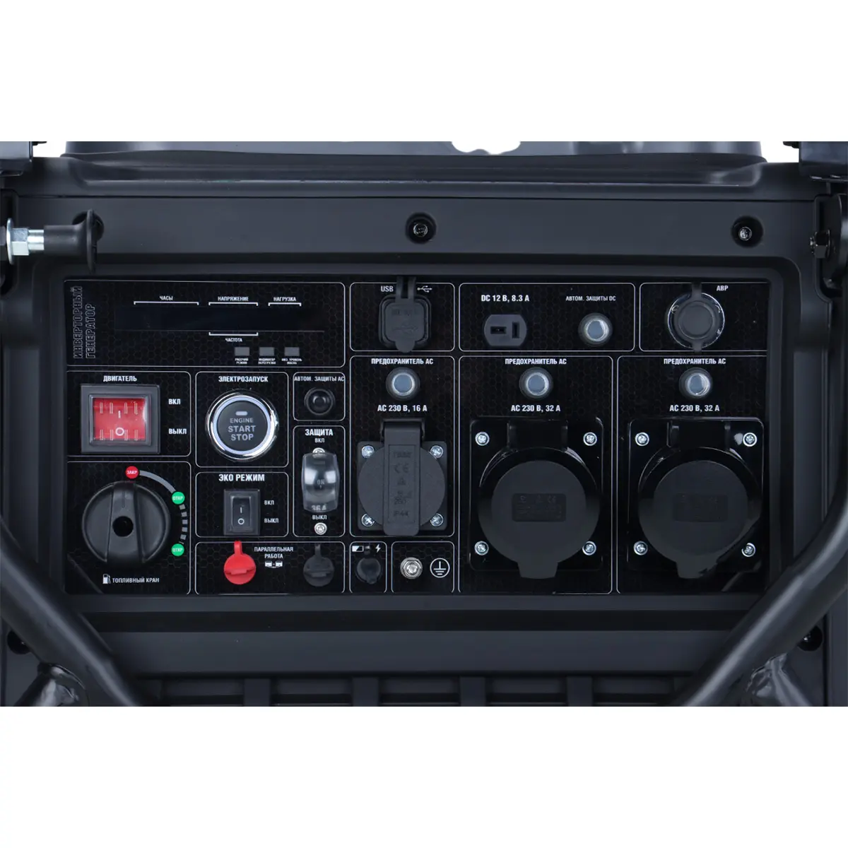 Помимо стандартных розеток, инверторный генератор оснащен: