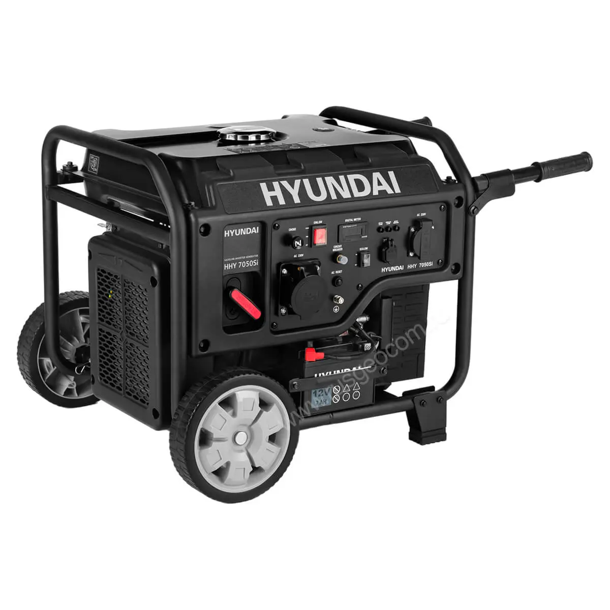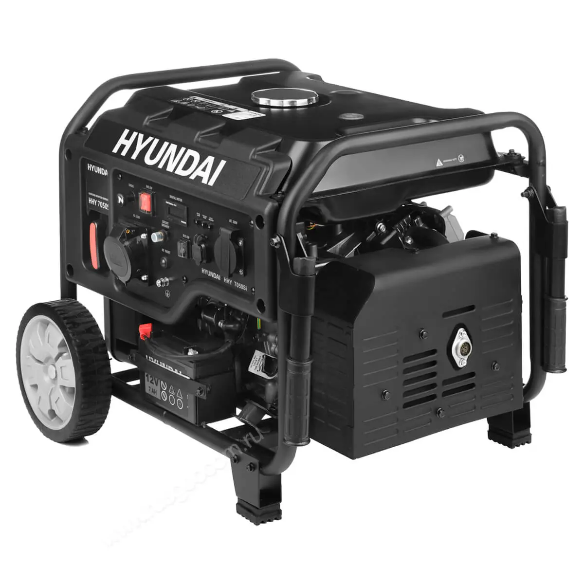 Установка оборудована электростартером, который работает от встроенного аккумулятора и позволяет легко запустить двигатель нажатием на кнопку. Если по каким-то причинам батарея окажется разряженной, Hyundai HHY 7050Si все еще можно будет запустить при помощи ручного стартера.