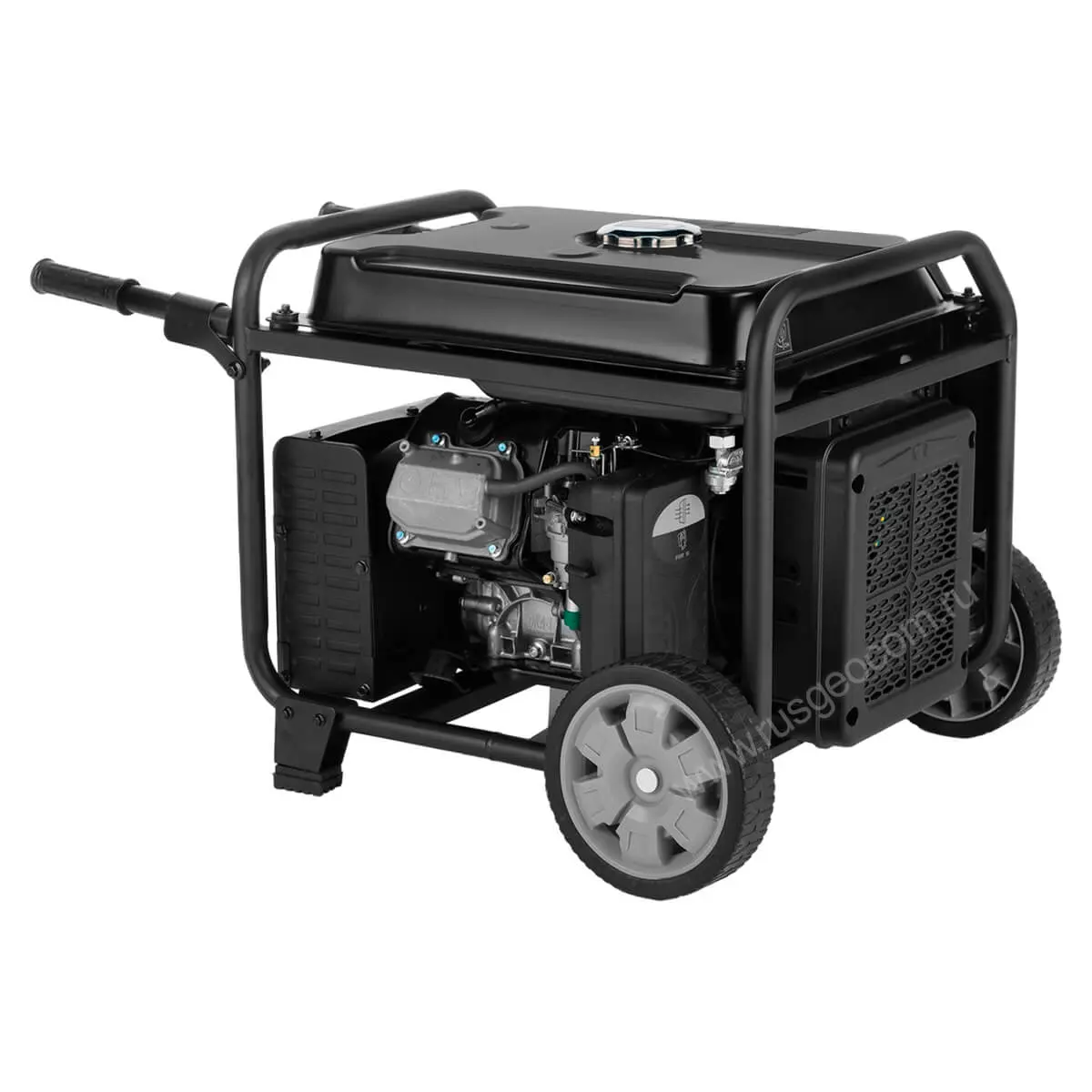 Модель оборудована транспортировочным комплектом, состоящим из больших колес и складных ручек, что с учетом относительно небольшой массы позволяет легко перемещать инверторный генератор с места на место.