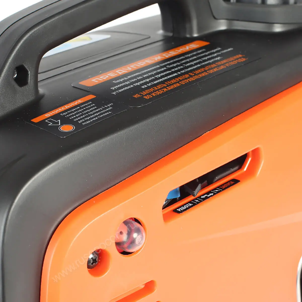 Инверторный генератор Patriot GP 1000i заключен в кожух, который не только защищает прибор во время перевозки, но также снижает уровень шума от работающего двигателя. Таким образом, находится рядом с электростанцией относительно комфортно.