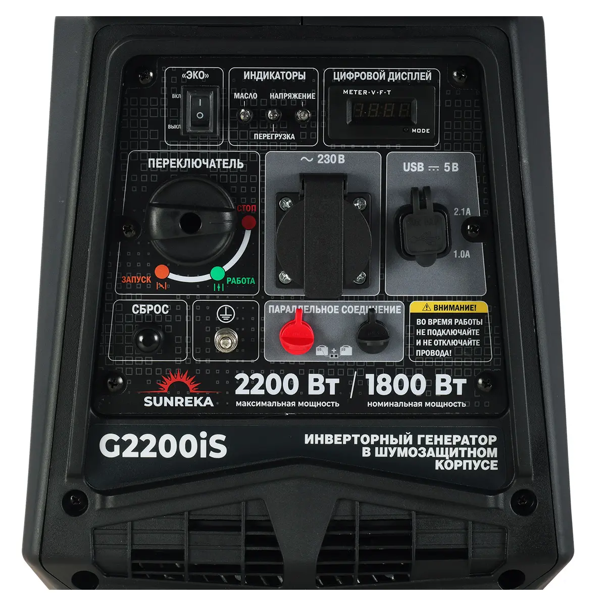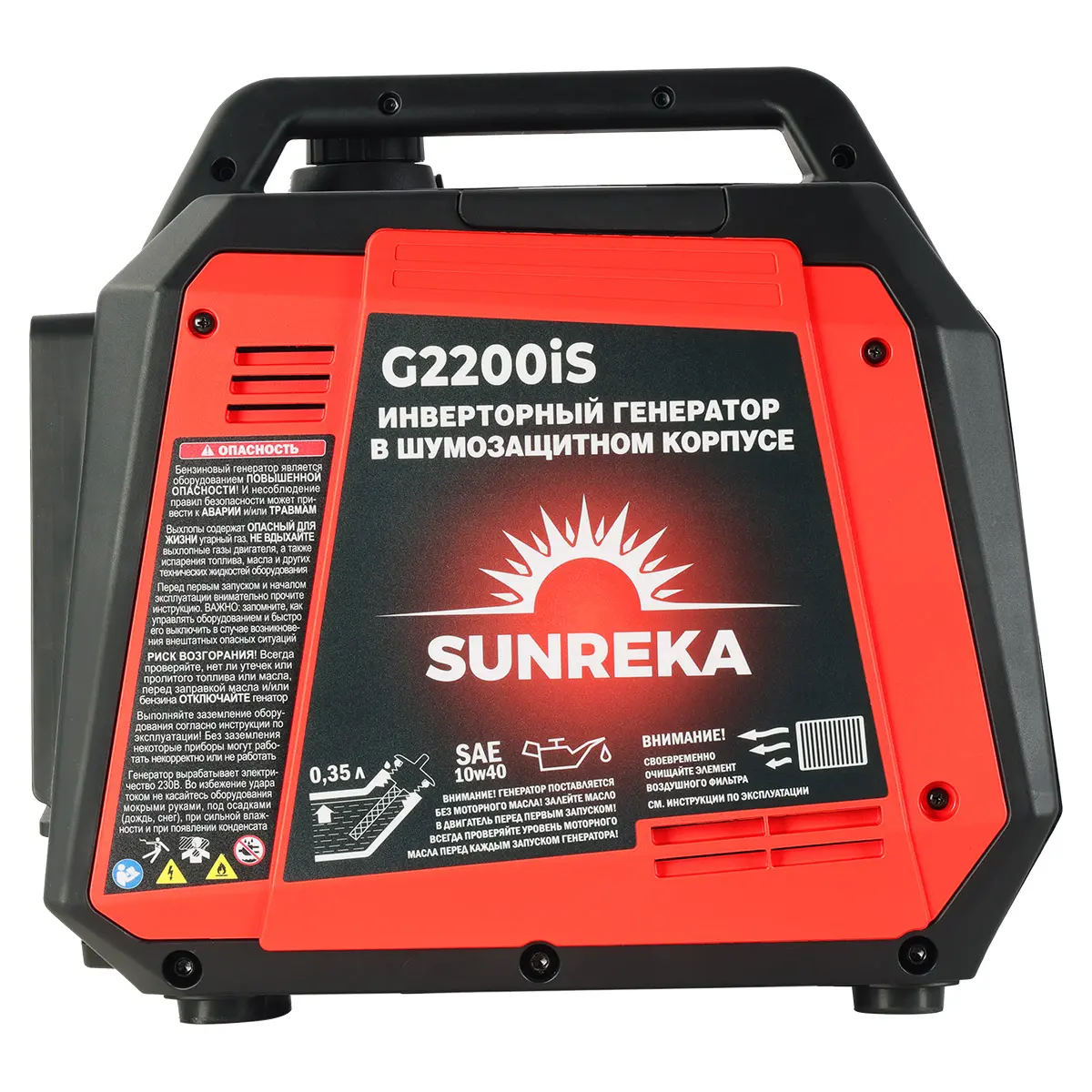 SUNREKA G2200iS оснащен множеством функций безопасности, которые обеспечивают надежную эксплуатацию. Защита от короткого замыкания, перегрузки, перепадов напряжения и низкого уровня масла гарантирует, что вы сможете использовать устройство без лишних забот. Это особенно важно, если вы находитесь вдали от цивилизации и не можете быстро решить проблемы с электрооборудованием.