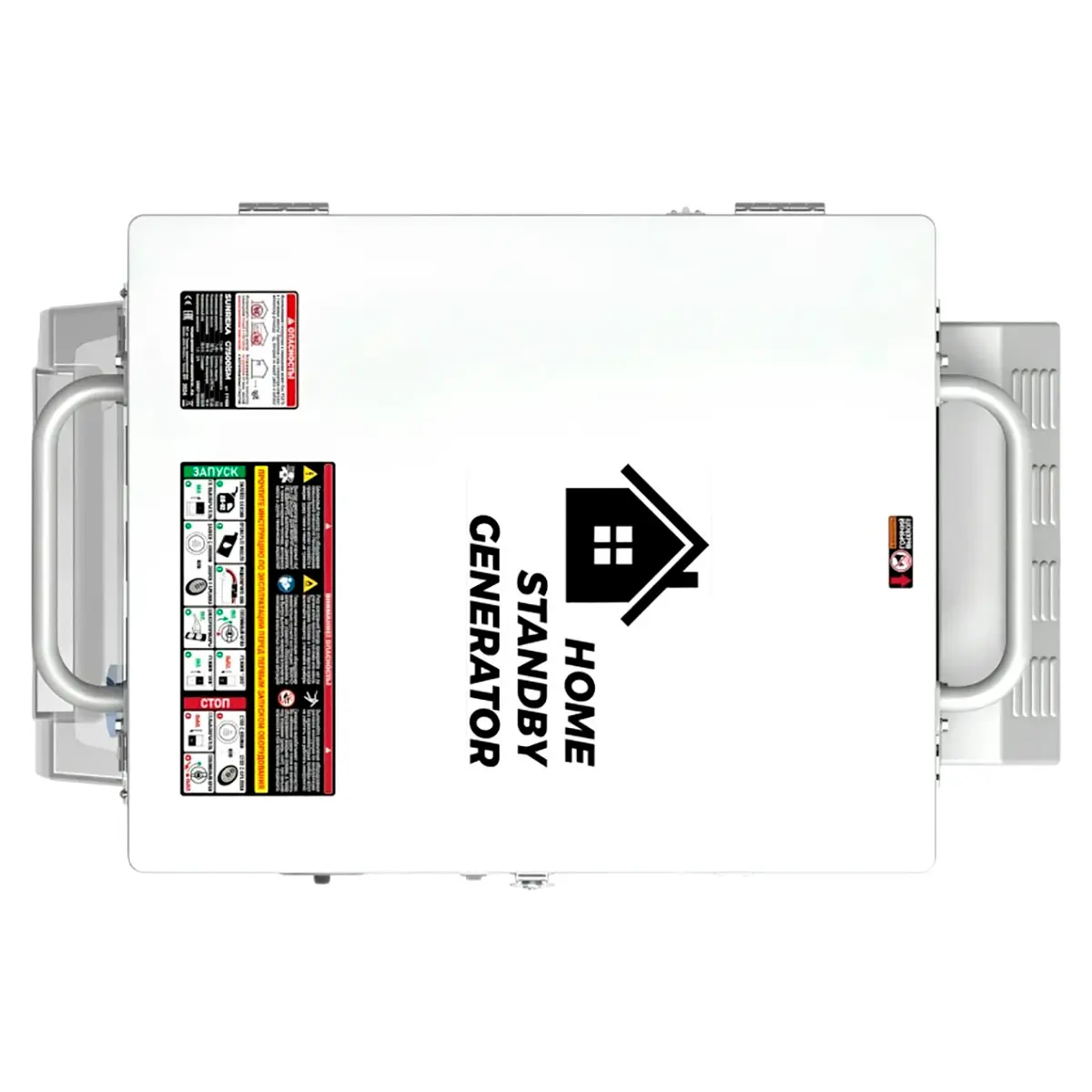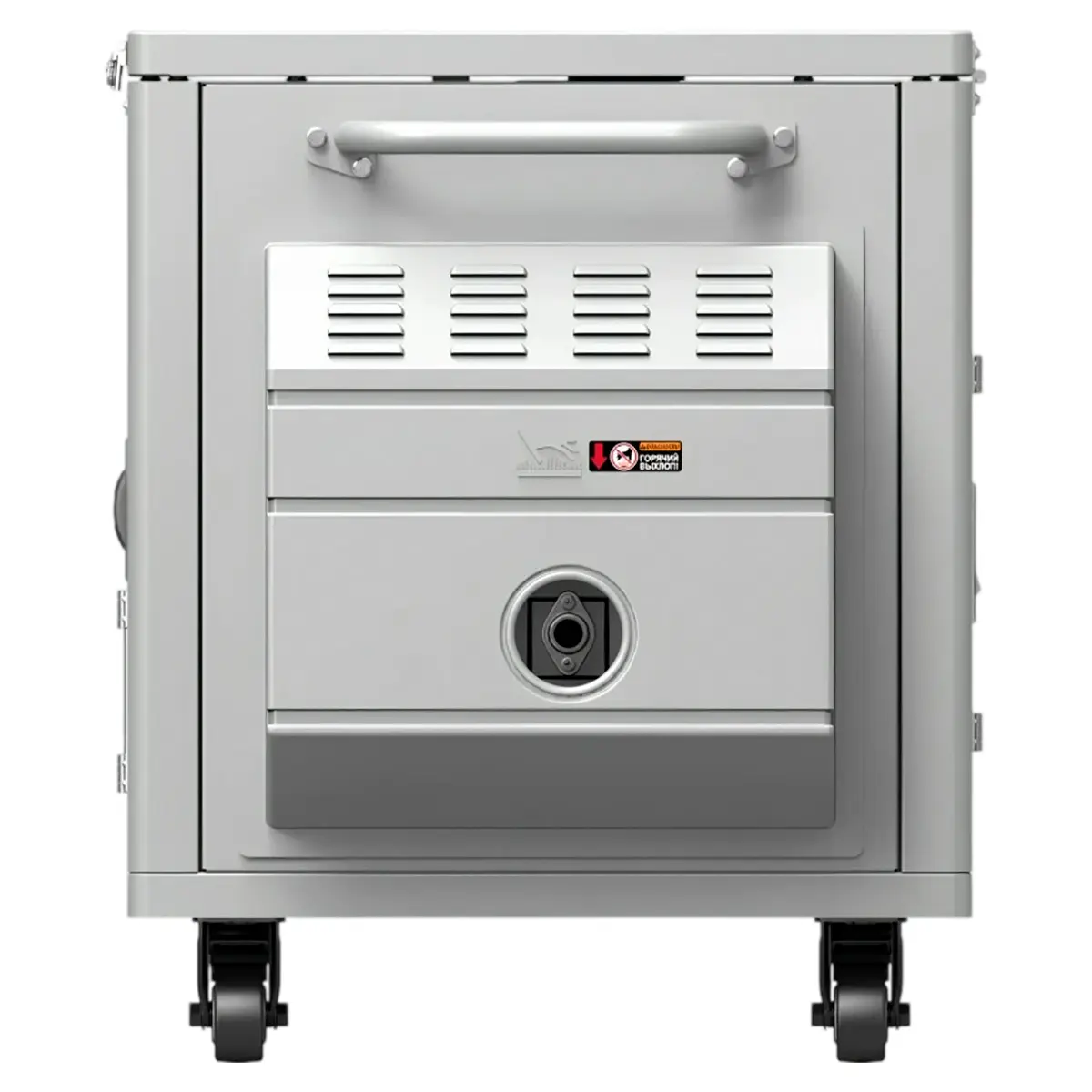 Корпус генератора оснащен двумя ручками – для подъема двумя операторами, а также колесами – для удобной транспортировки по ровному полу/асфальту. Передние два колеса – поворотные, с тормозом.