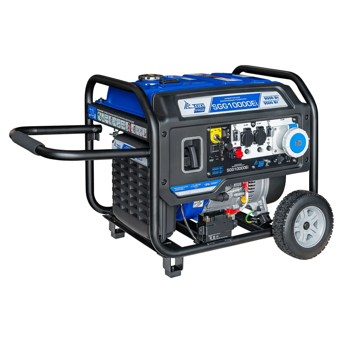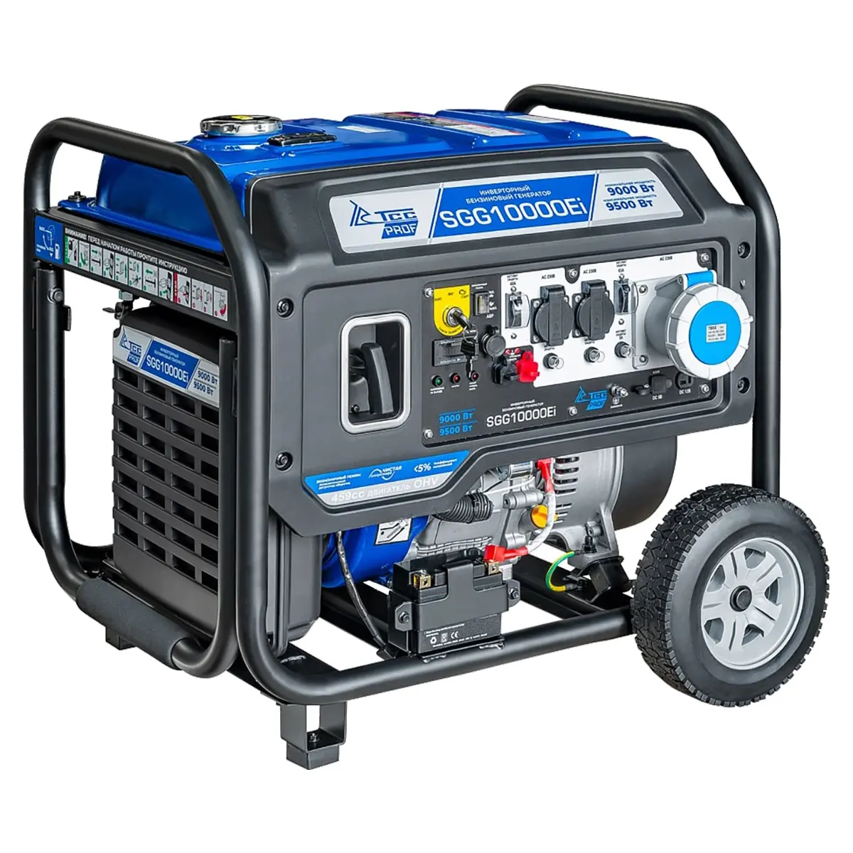 Профессиональный инверторный бензиновый генератор SGG 10000Ei с электростартом и разъемом для подключения блока автоматики. Укомплектован колесным комплектом для удобства перемещения. Мощная инверторная электростанция подходит не только для частного дома. Максимальная мощность 9,5 кВт электростанции достаточно для работы большого количества высокочувствительных электроприборов, а также оборудования высокой мощности. Электрозапуск обеспечивает быстрый и легкий пуск инвертора.