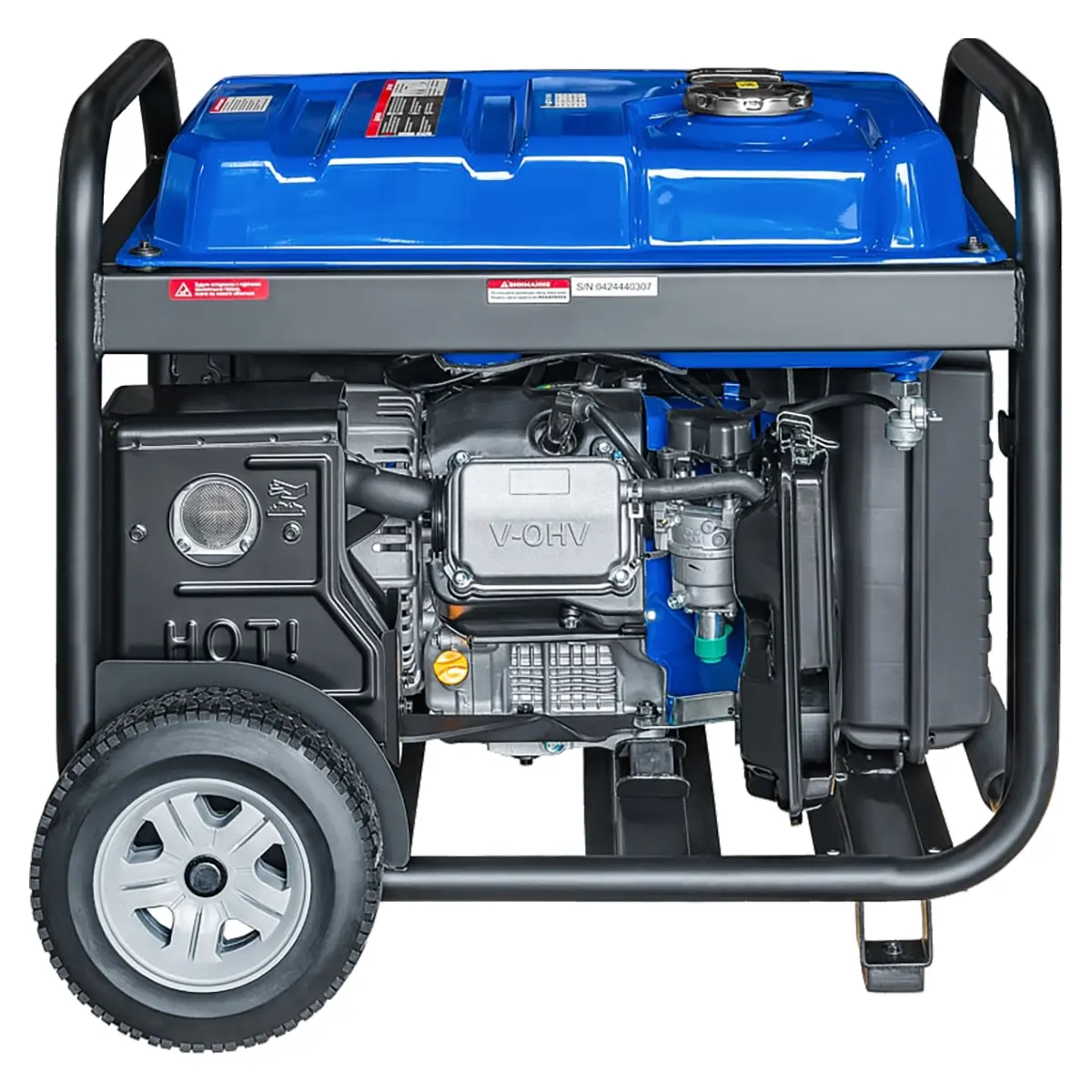 - Цифровой дисплей позволяет контролировать выходное напряжение, частоту переменного тока, количество отработанных моточасов