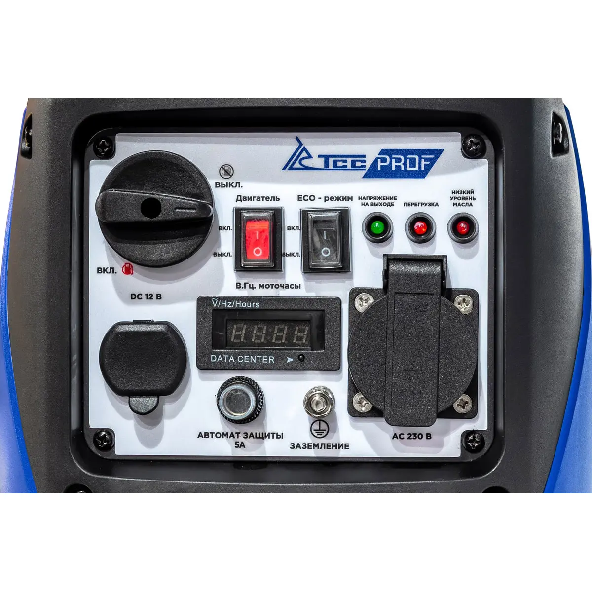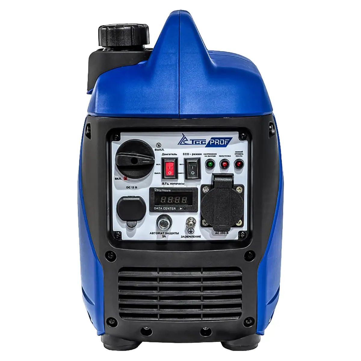 Агрегат оснащен цифровым дисплеем, который позволяет контролировать выходное напряжение, частоту переменного тока и количество отработанных моточасов. Это дает возможность заранее планировать время работы генератора и следить за его состоянием, что особенно важно в условиях ограниченного доступа к электричеству.