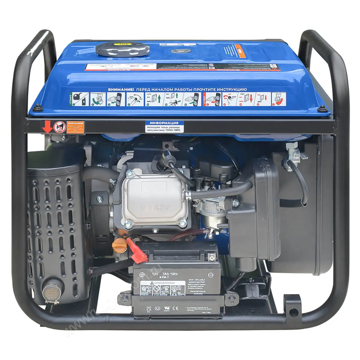 Встроенные электронные системы обеспечивают высокую стабильность тока и защиту как электростанции, так и подключенной нагрузки от опасных ситуаций, таких как короткое замыкание или перегрузка. Также в конструкции предусмотрен механизм, который не даст запустить двигатель на сущую и оповестит пользователя при недостаточном уровне масла.