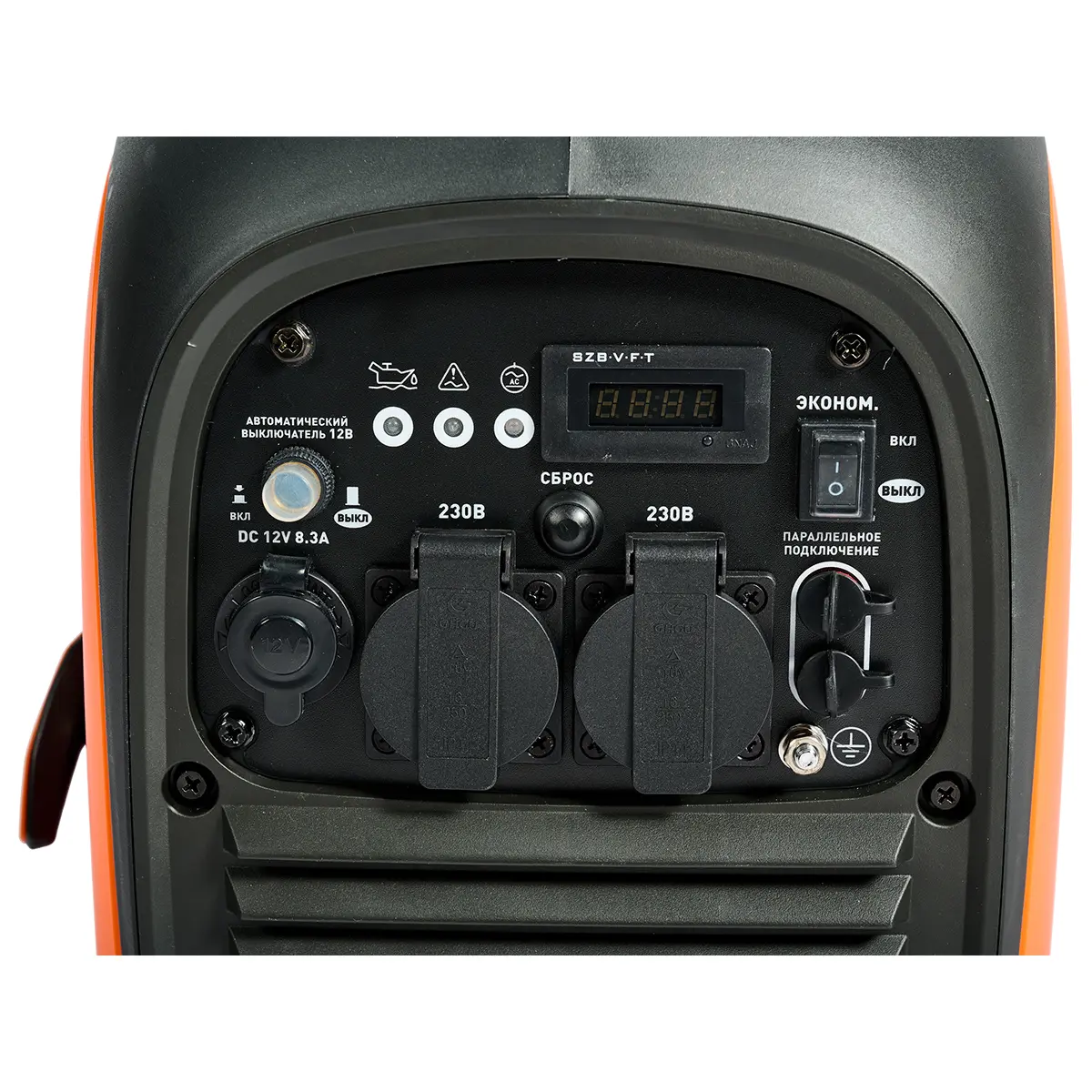 Инверторный генератор оборудован тремя розетками: двумя стандартными и одной на 12 В. Это позволяет подключать различные устройства и использовать оборудование для разных целей, в том числе для зарядки аккумуляторов. Кроме того, наличие порта USB делает эту модель еще более удобной в использовании.