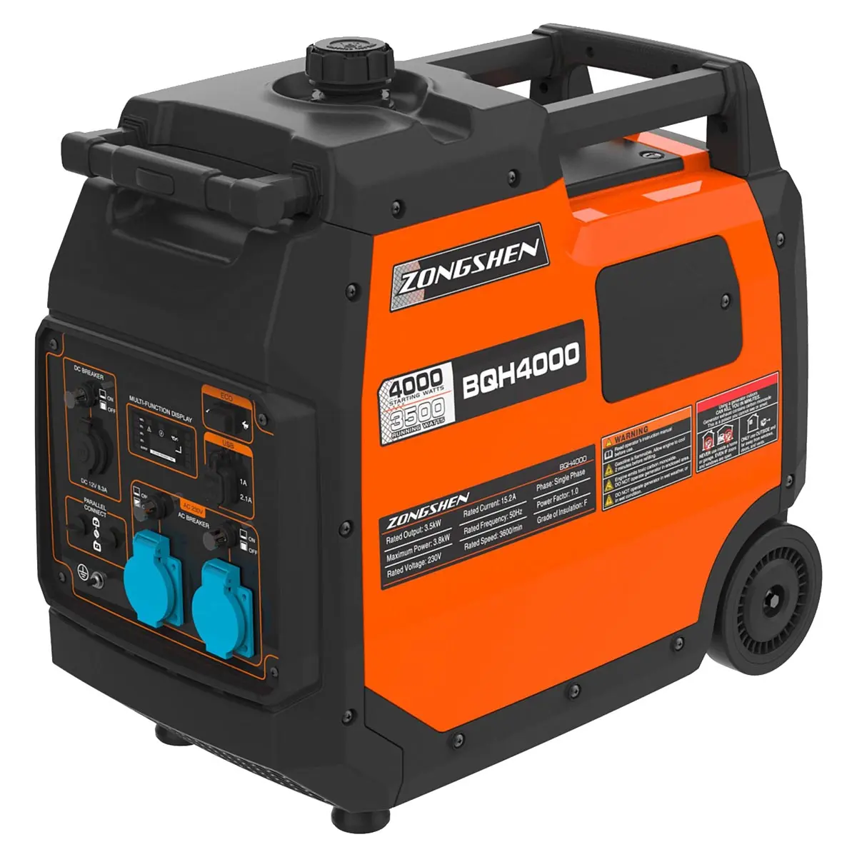 Инверторный бензиновый генератор Zongshen BQH 4000 E - это надежный и удобный источник электроэнергии переменного однофазного тока напряжением 220 В. Номинальная мощность составляет 3,6 кВА, что позволяет удовлетворить потребности большинства бытовых устройств. С помощью этого оборудования вы можете наслаждаться комфортом и удобством электричества даже вдали от цивилизации.