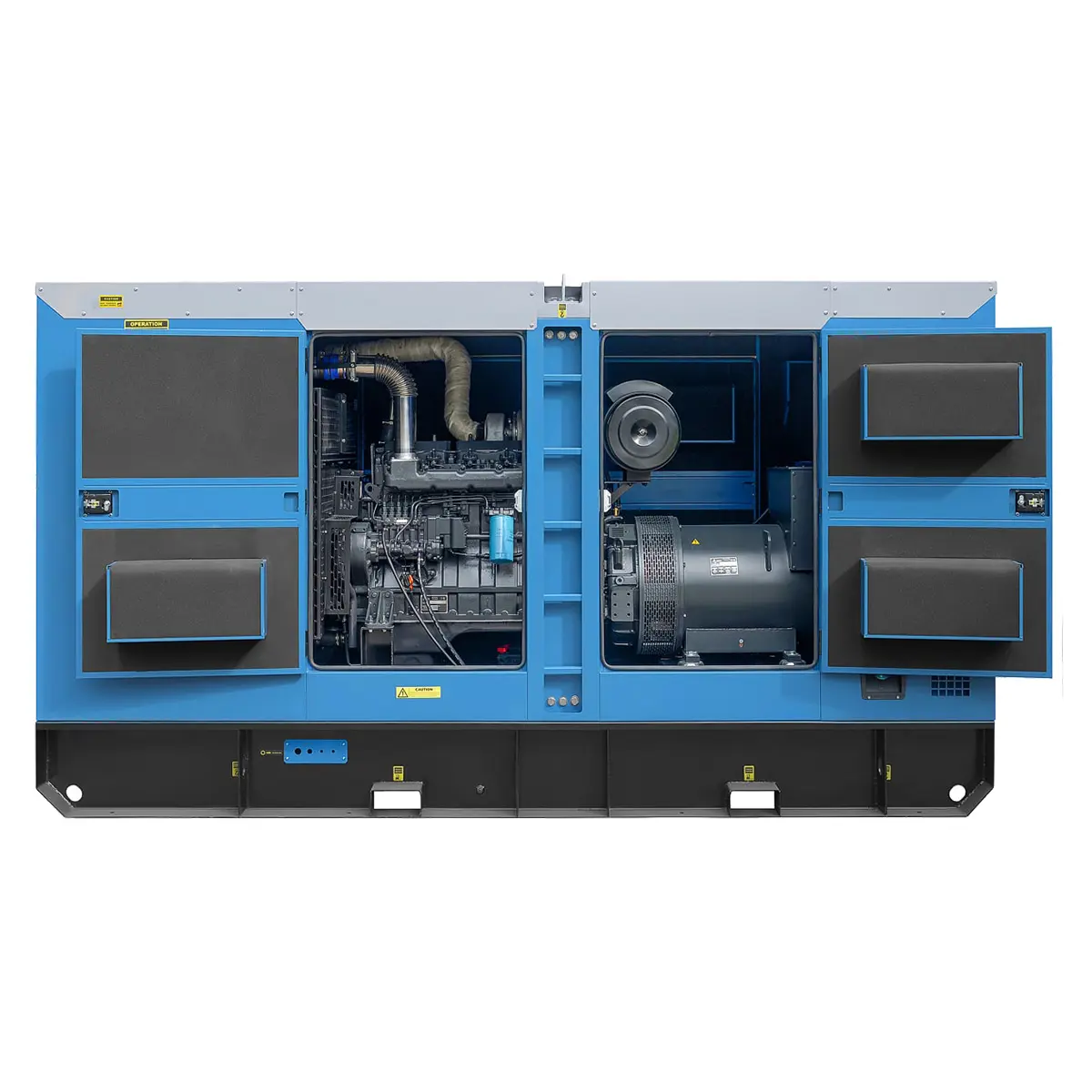 Установка имеет закрытую конструкцию, все узлы расположены на прочной стальной раме в шумозащитном кожухе. Данная модель функционирует за счет 4-тактного мотора TSS Diesel TDA-N 337 6LTE, работающего по принципу прямого впрыска топлива. ДВС имеет мощный топливный насос, а также надежный турбокомпрессор марки HOLSET. Запуск осуществляется при помощи электростартера на 24В.