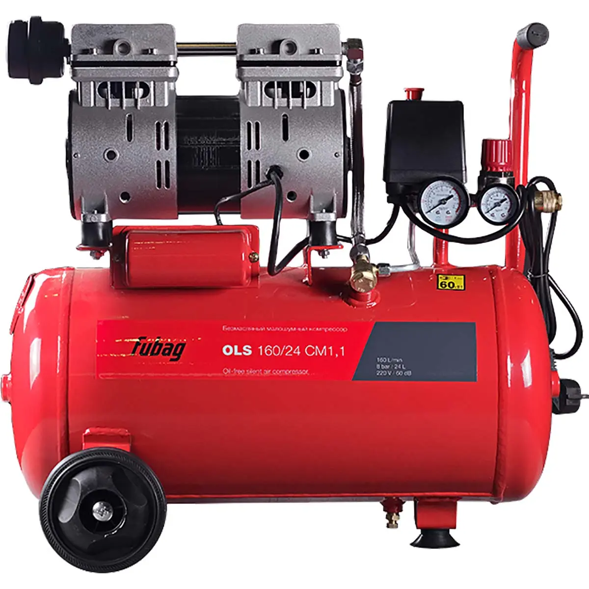 Безмасляная компрессорная головка обеспечивает получение чистого сжатого воздуха без примесей масла. Это особенно важно, если вы работаете в областях, где требуется чистота воздуха, например, в медицинских учреждениях или пищевой промышленности. Компрессор также имеет дополнительный манометр на ресивере, который позволяет отслеживать давление в ресивере с высокой точностью.