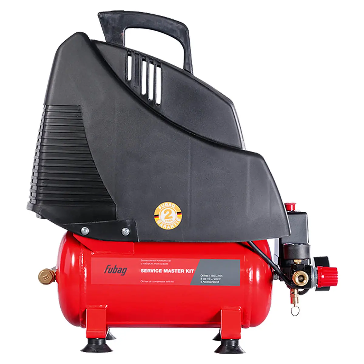 Безмасляный компрессор FUBAG SERVICE MASTER KIT + 6 предметов — это универсальное устройство, которое подойдет для широкого круга задач в гараже, мастерской или на даче. Компактные размеры и небольшой вес позволяют легко переносить его с места на место, а в комплекте с ним поставляются базовые аксессуары, которые всегда пригодятся для обслуживания техники - насадка для продувки, пневмопистолет, шланг, наконечники и др.