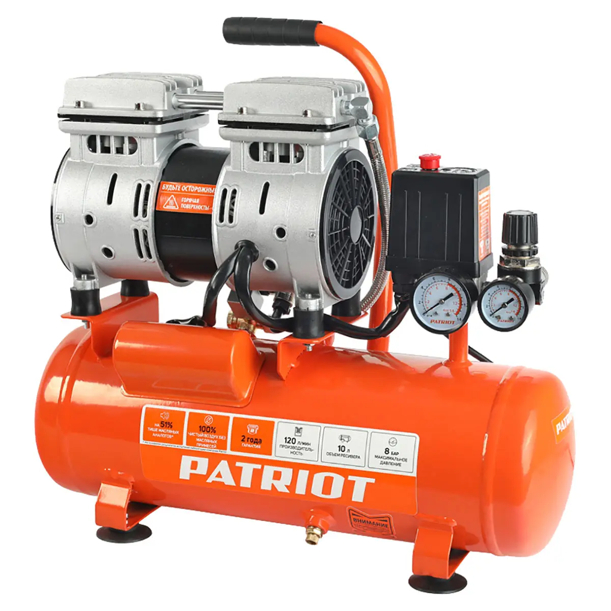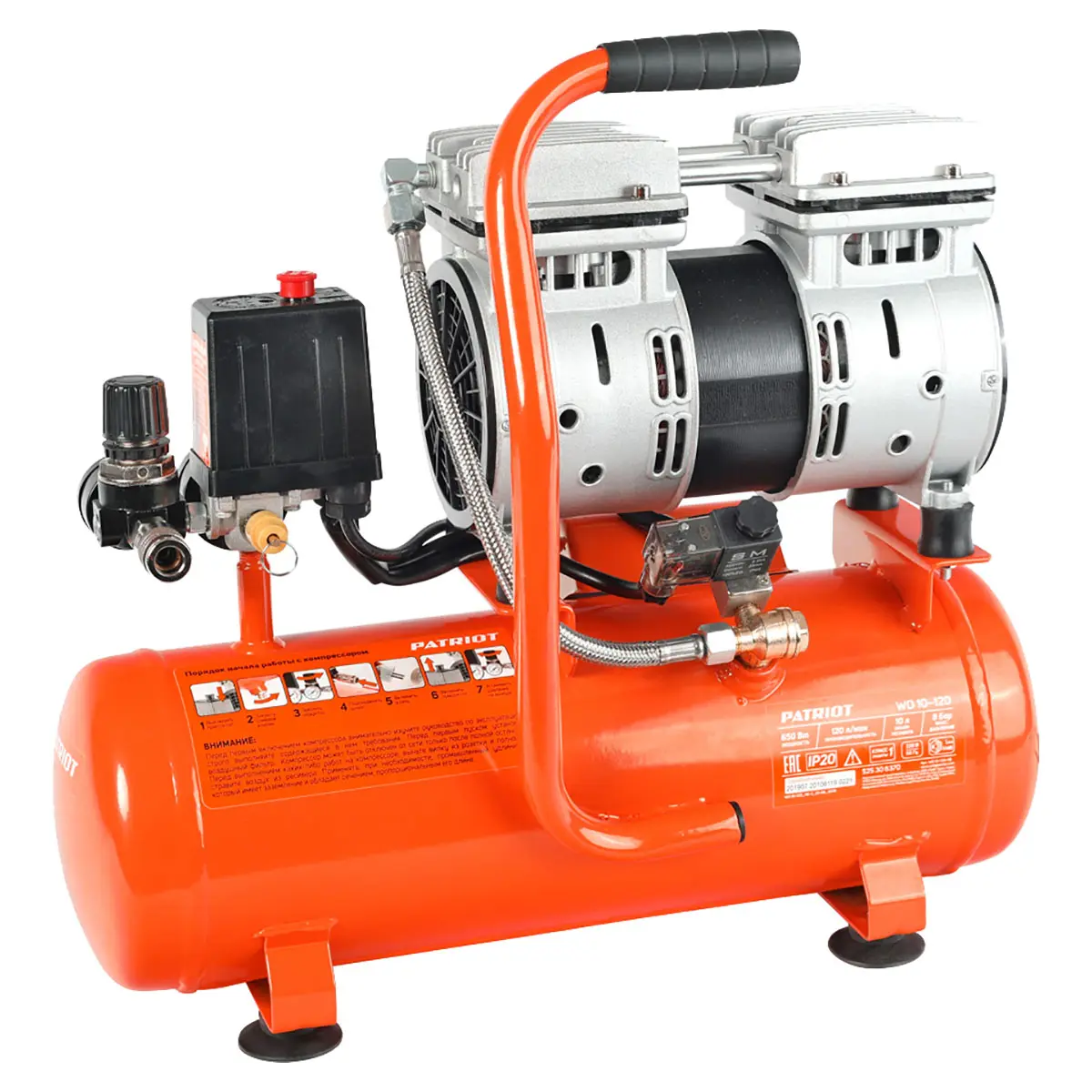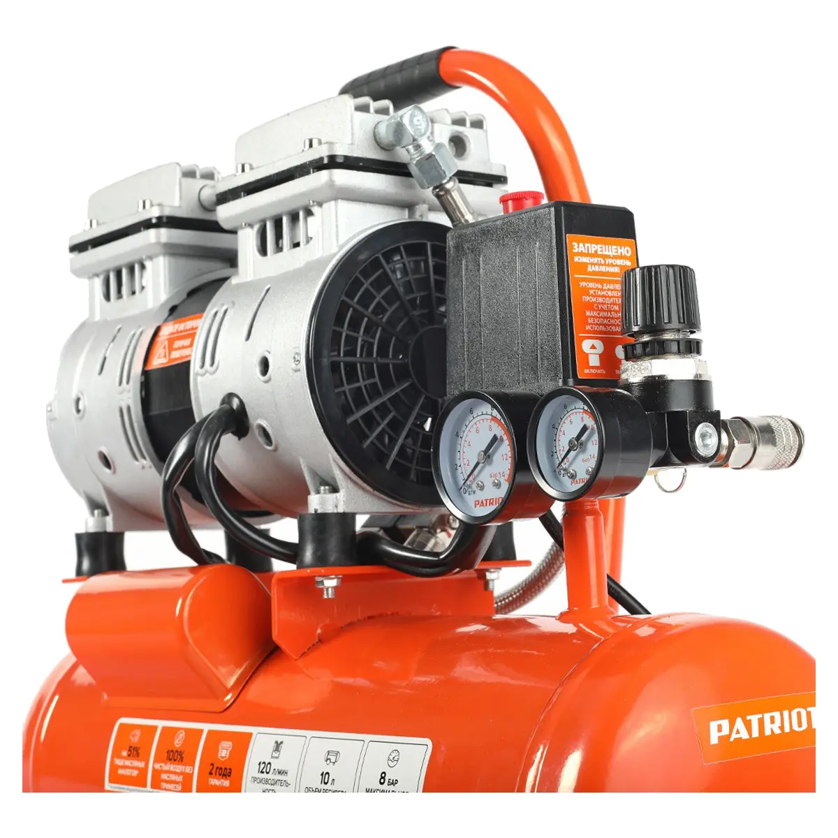 Компрессор поршневой безмасляный Patriot WO 10-120 используется для питания пневматического инструмента, накачивания шин, продувки различных поверхностей и труб, а также для многих других задач. Модель отличается безмасляной конструкцией и высокой эффективностью.