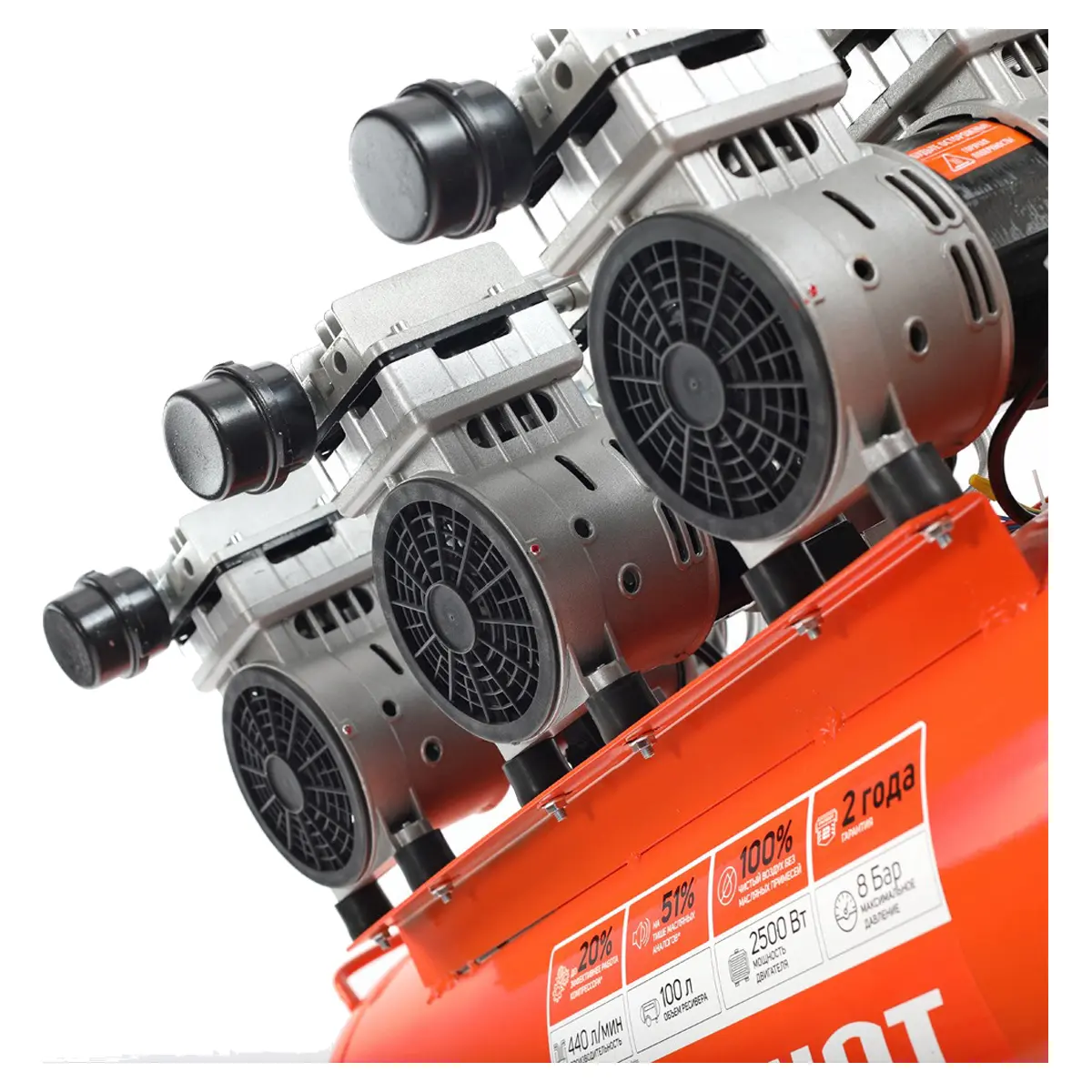 - Высокая производительность - 440 л/мин, что позволяет использовать его для питания самых разных пневматических инструментов, включая гайковерты, шлифовальные машины, краскопульты и т.д.