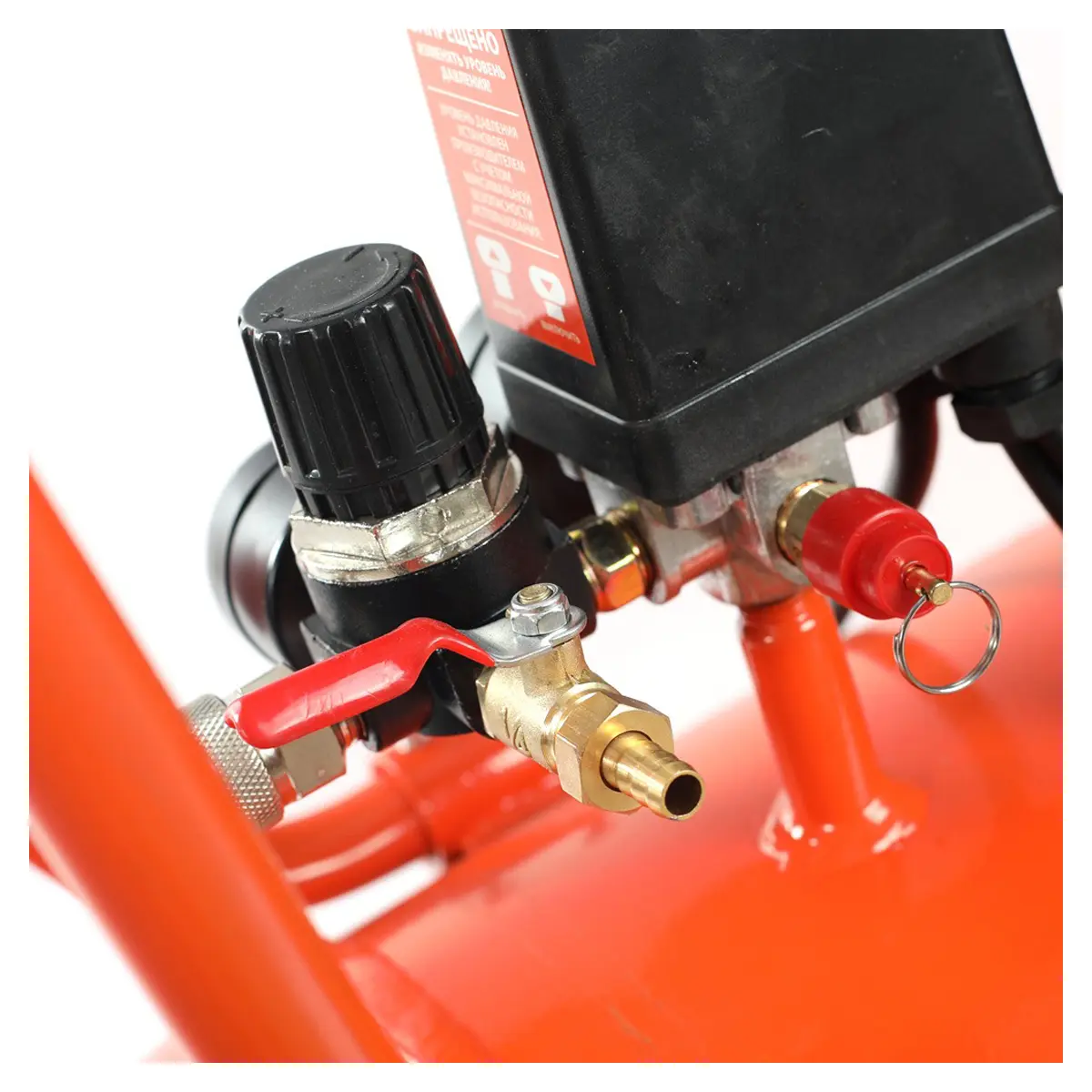 - Безопасность - пневмокомпрессор оснащен предохранительным клапаном для сброса лишнего воздуха, а также сливным клапаном для удаления конденсата из ресивера, что обеспечивает безопасность его эксплуатации.