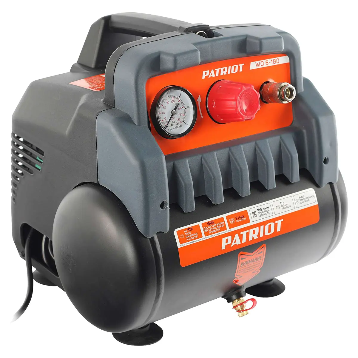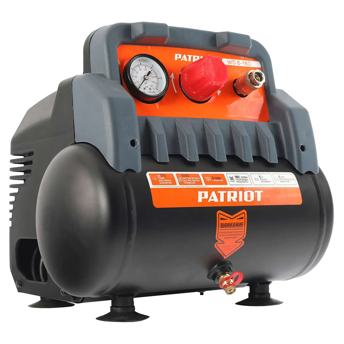 Купить воздушный компрессор Patriot WO 6-180, а также получить консультацию специалистов об особенностях и преимуществах данного изделия вы можете в нашем магазине , связавшись с нами по телефону или непосредственно через сайт – с помощью формы обратной связи или воспользовавшись чатом с онлайн-консультантом.