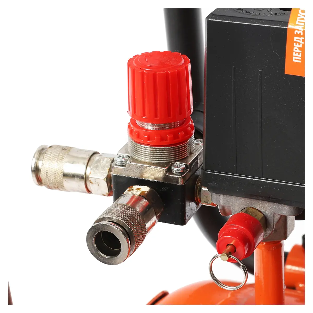 - Дополнительный клапан на ресивере позволяет подключить пневмоинструмент или дополнительный ресивер, расширяя возможности использования техники.