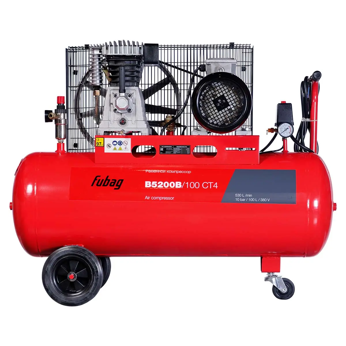 Ременной компрессор FUBAG B5200B/100 CT4 – надежное и удобное в эксплуатации оборудование, которое подходит для работы практически со всеми видами пневмоинструмента. Если у вас есть крупное гаражное хозяйство, автопарк, стройплощадка или небольшое производство, то этот агрегат станет экономичным решением для обеспечения сжатым воздухом.