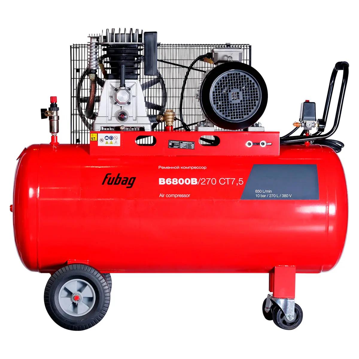 Ременной компрессор Fubag B6800B/270 СТ7.5 представляет собой мощный одноступенчатый поршневой агрегат, специально разработанный для длительной интенсивной эксплуатации.