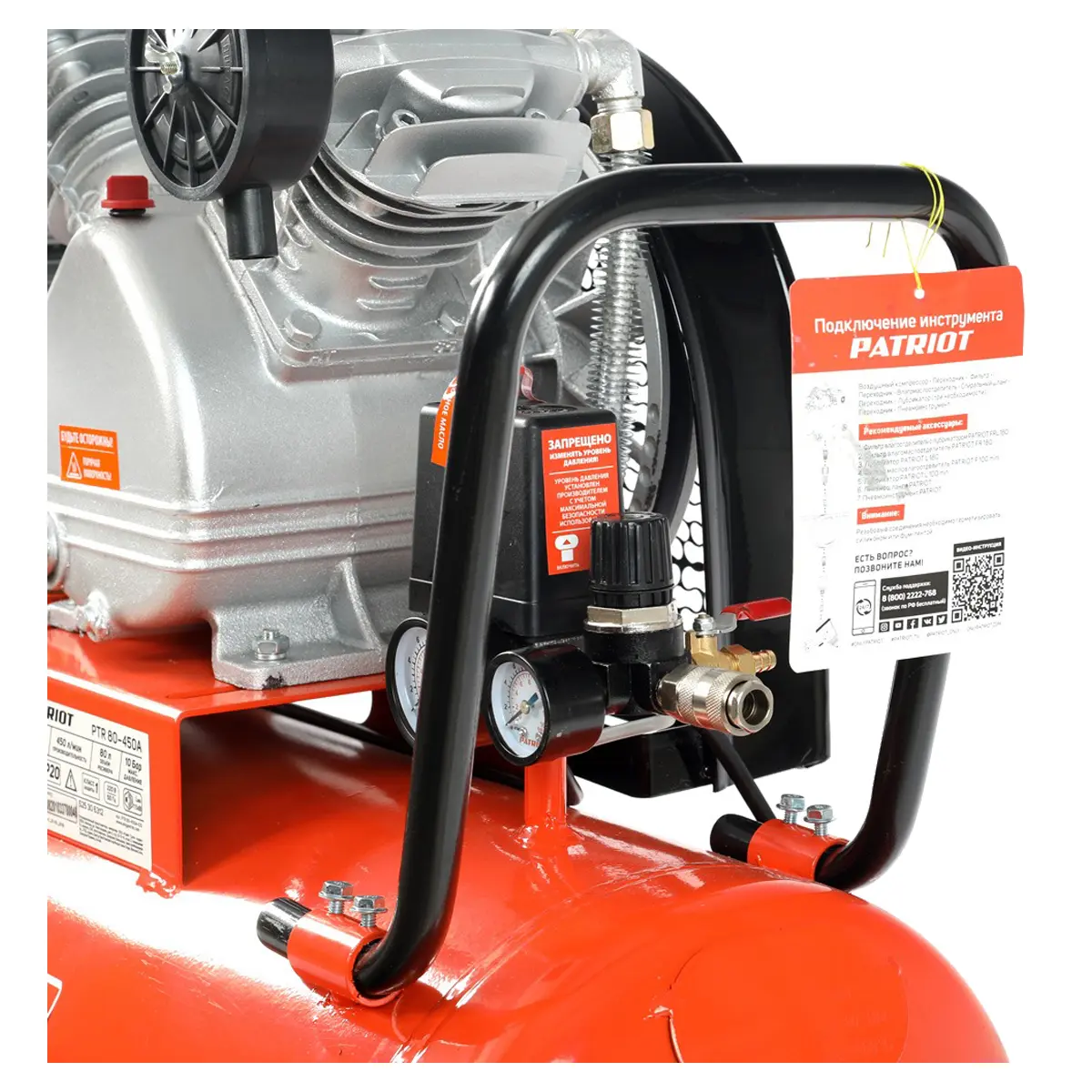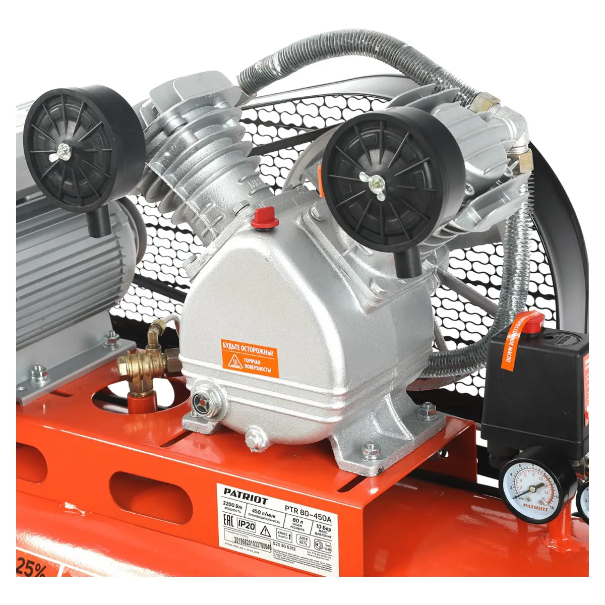 Обладая возможностью регулировки давления в диапазоне от 1 до 12,5 атм, компрессор PATRIOT PTR 80-450A позволяет адаптировать его под различные требования пневмоинструментов. Два стрелочных манометра позволяют легко контролировать текущее давление в системе. Дополнительную безопасность обеспечивает реле давления, автоматически поддерживающее заданный уровень давления в ресивере. В случае отказа прессостата срабатывает предохранительный клапан, стравливая воздух из системы.