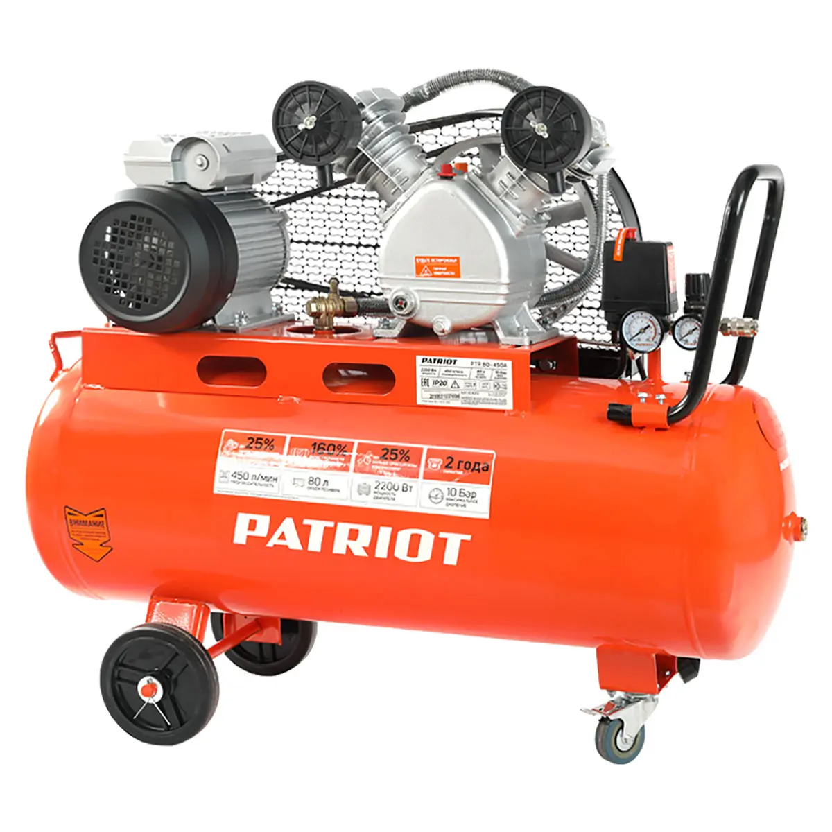 Поршневой ременной компрессор PATRIOT PTR 80-450A - это надежный и производительный агрегат, предназначенный для питания пневматического инструмента и выполнения различных работ, требующих сжатого воздуха. Его внушительные характеристики и ряд преимуществ делают его идеальным выбором для профессиональных мастерских, гаражей и строительных площадок.