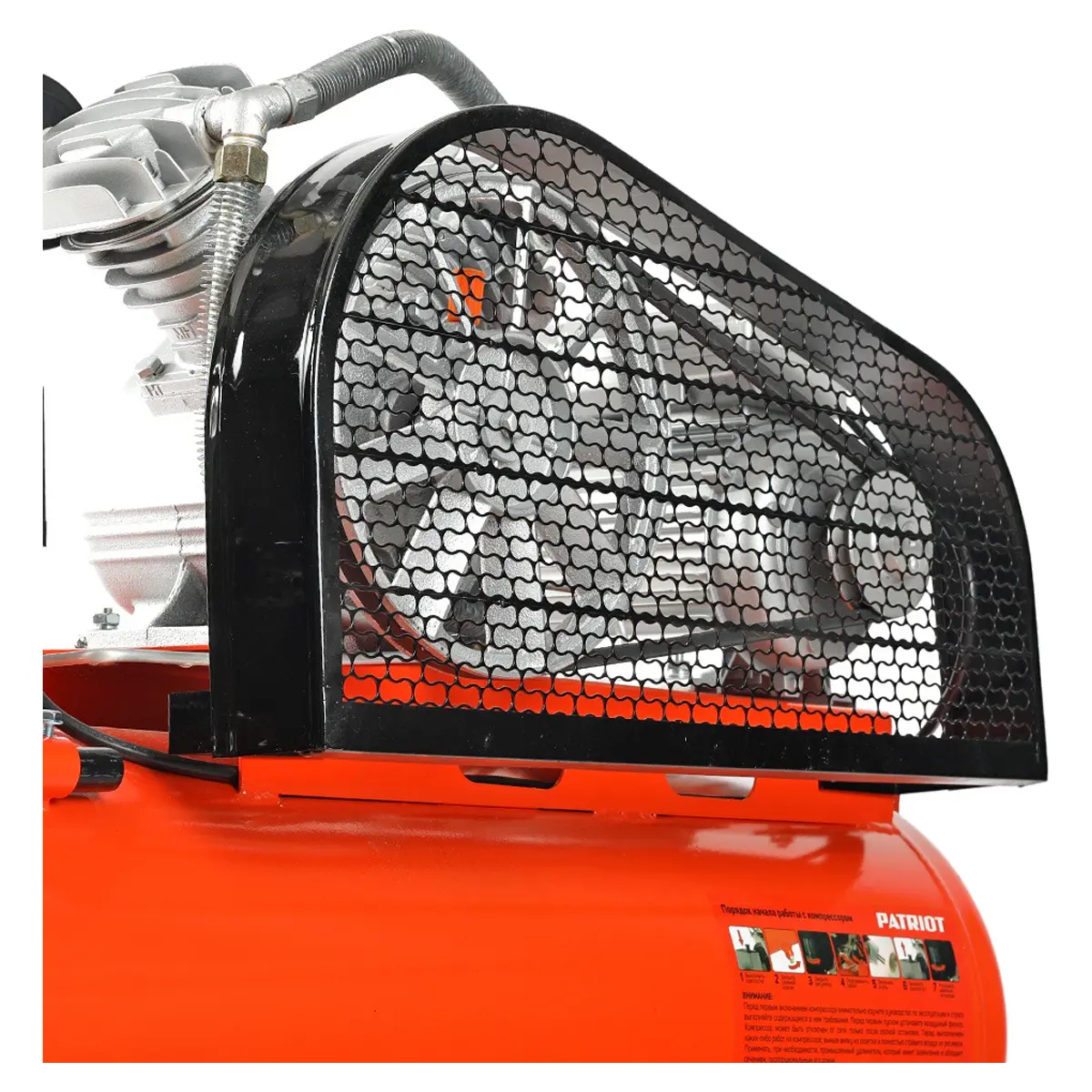 Демпфирующее действие ремня передачи обеспечивает плавный пуск компрессора PATRIOT PTR 80-450A, защищая двигатель от перегрузок, а также уменьшает износ внутренних компонентов. Кроме того, ремень в сочетании с передаточным колесом обеспечивает высокое КПД и выходное давление, повышая эффективность работы.