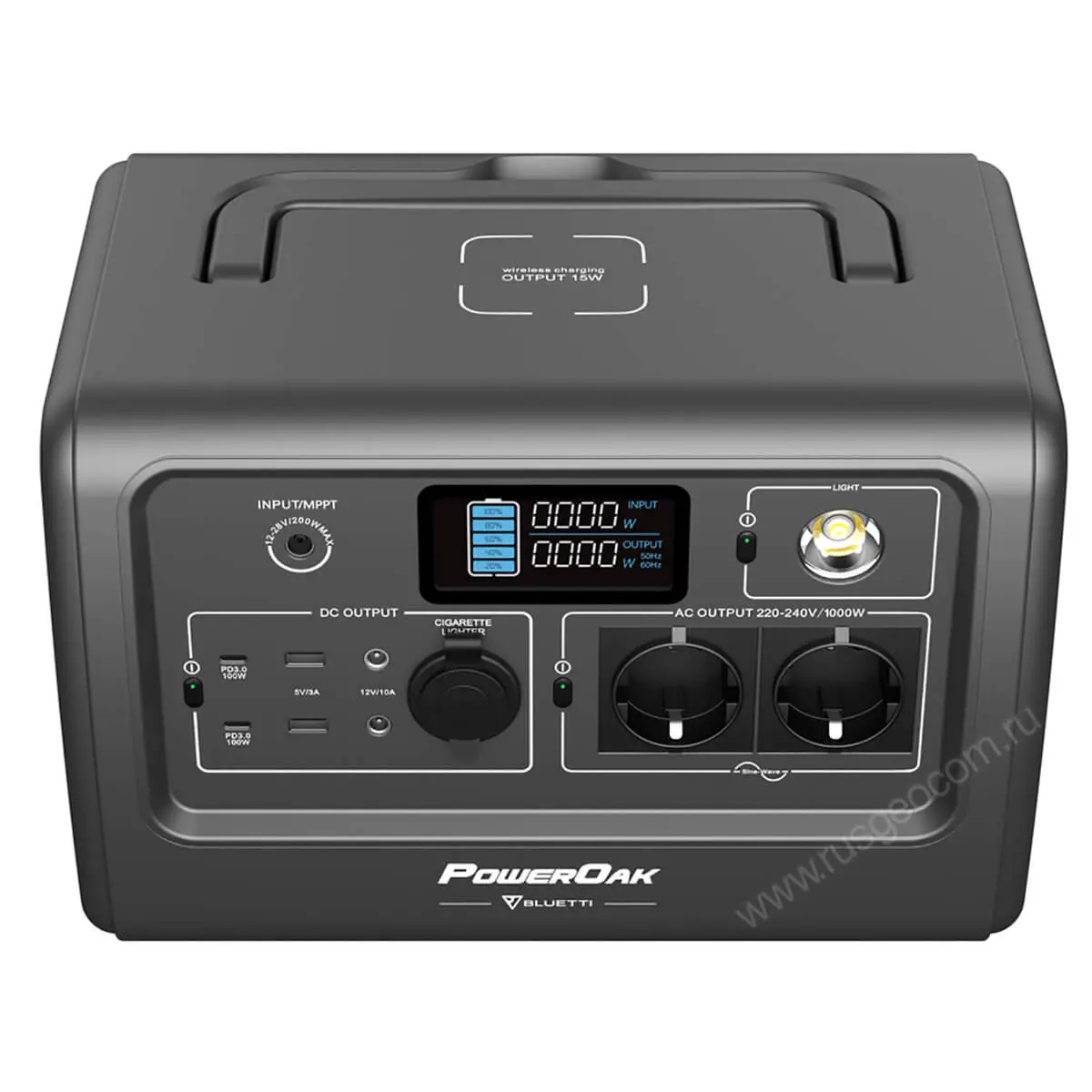 Портативная зарядная станция оснащена инвертором на 1000 Вт с идеальной синусоидой на выходе, благодаря чему может применяться для электроснабжения не только электроинструментов и бытовых приборов, но и прецизионной электроники, компьютерного оборудования и других потребителей, чувствительных к качеству электроэнергии.