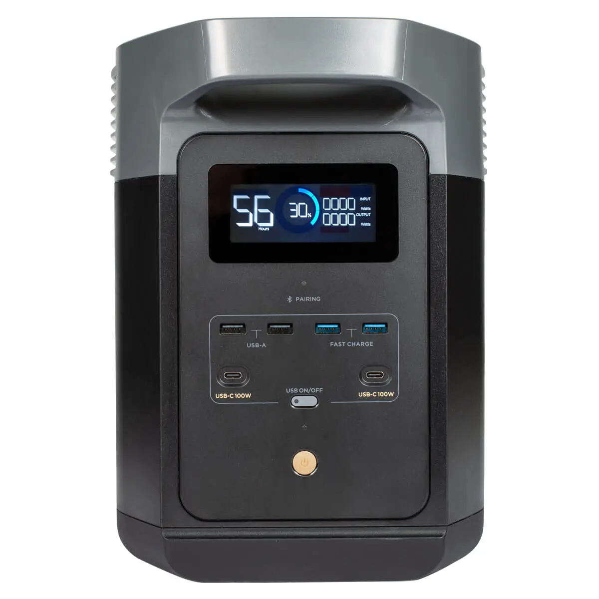 При подключении к сети зарядка EcoFlow DELTA 2 от нуля до 100% занимает порядка 80 минут. Также можно использовать солнечные панели, на это уйдет от 3 до 6 часов, или адаптер для зарядки от автомобиля.