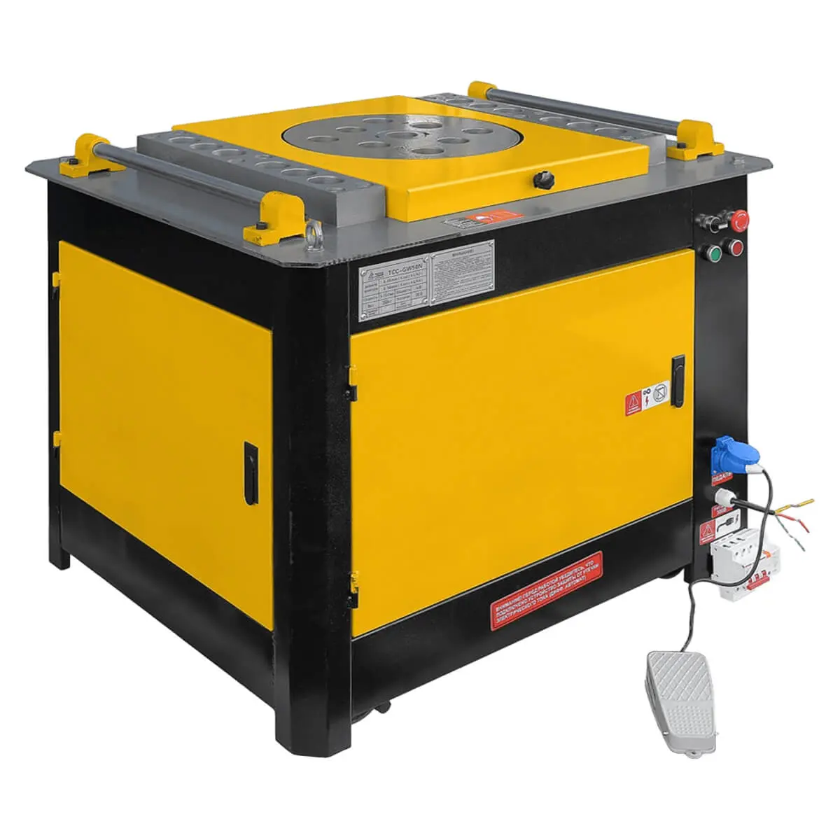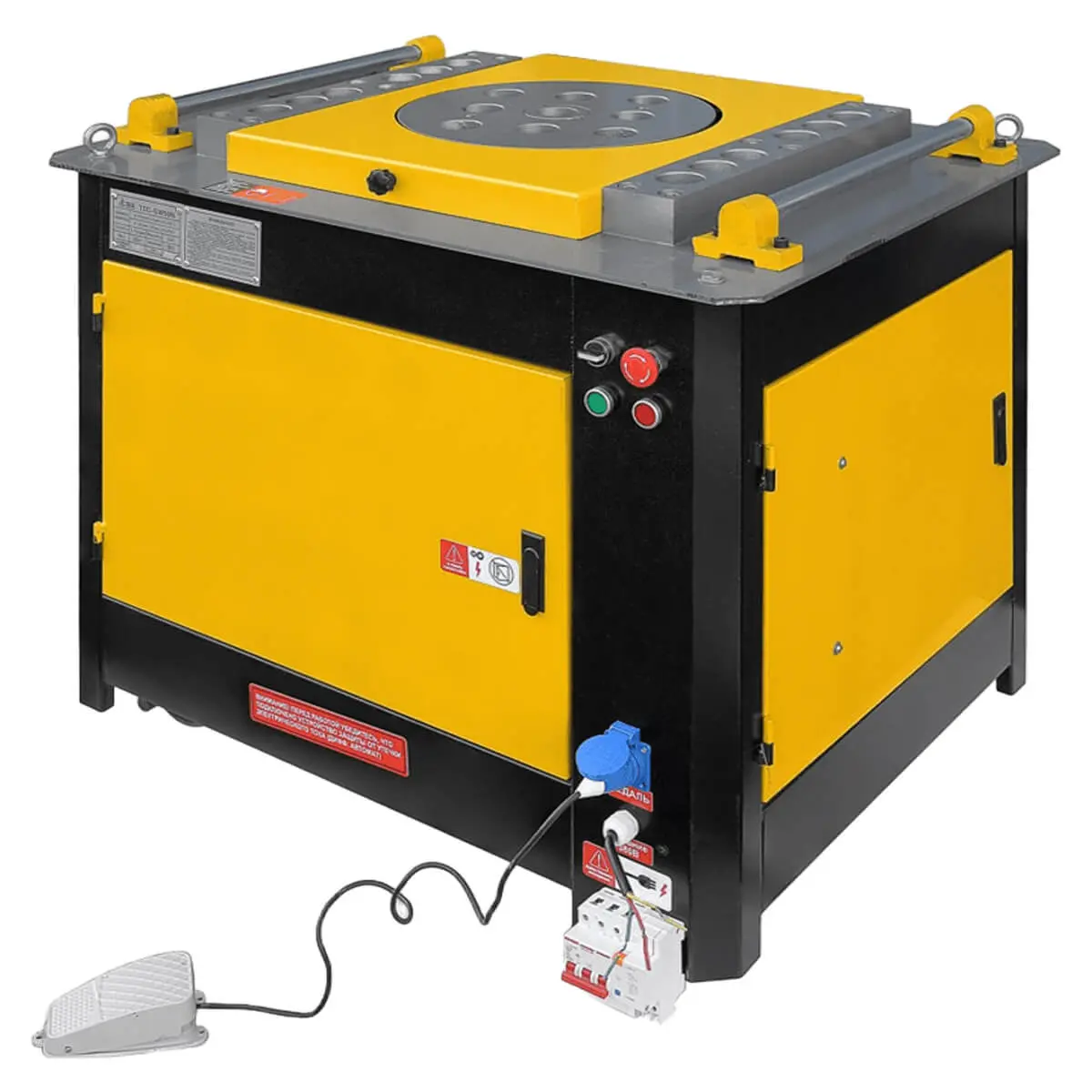 Станки для гибки арматуры – высокотехнологичное оборудование, которое используется для холодной гибки арматурной стали, сортового проката на строительных площадках, под навесом, на производствах железобетонных и металлических конструкций, таких как дорожные плиты, блоки или панели перекрытий, а также в производственных цехах. Помимо этого, гибщики востребованы непосредственно в строительстве – например, при создании фундаментов будущих зданий. Благодаря использованию гибщиков арматуры удается существенно сократить время производства железобетонных изделий и конструкций, а также снизить трудозатраты. Простота в управлении и легкость регулировки нужного угла изгиба дают возможность быстро перенастроить станок для изготовления очередного вида изделий. Наличие педального и ручного управления способствует удобству работы оператора. Диск сгибания работает в режиме доводчика. Поставляемые модели оснащены всем необходимым и полностью готовы к использованию на предприятиях.