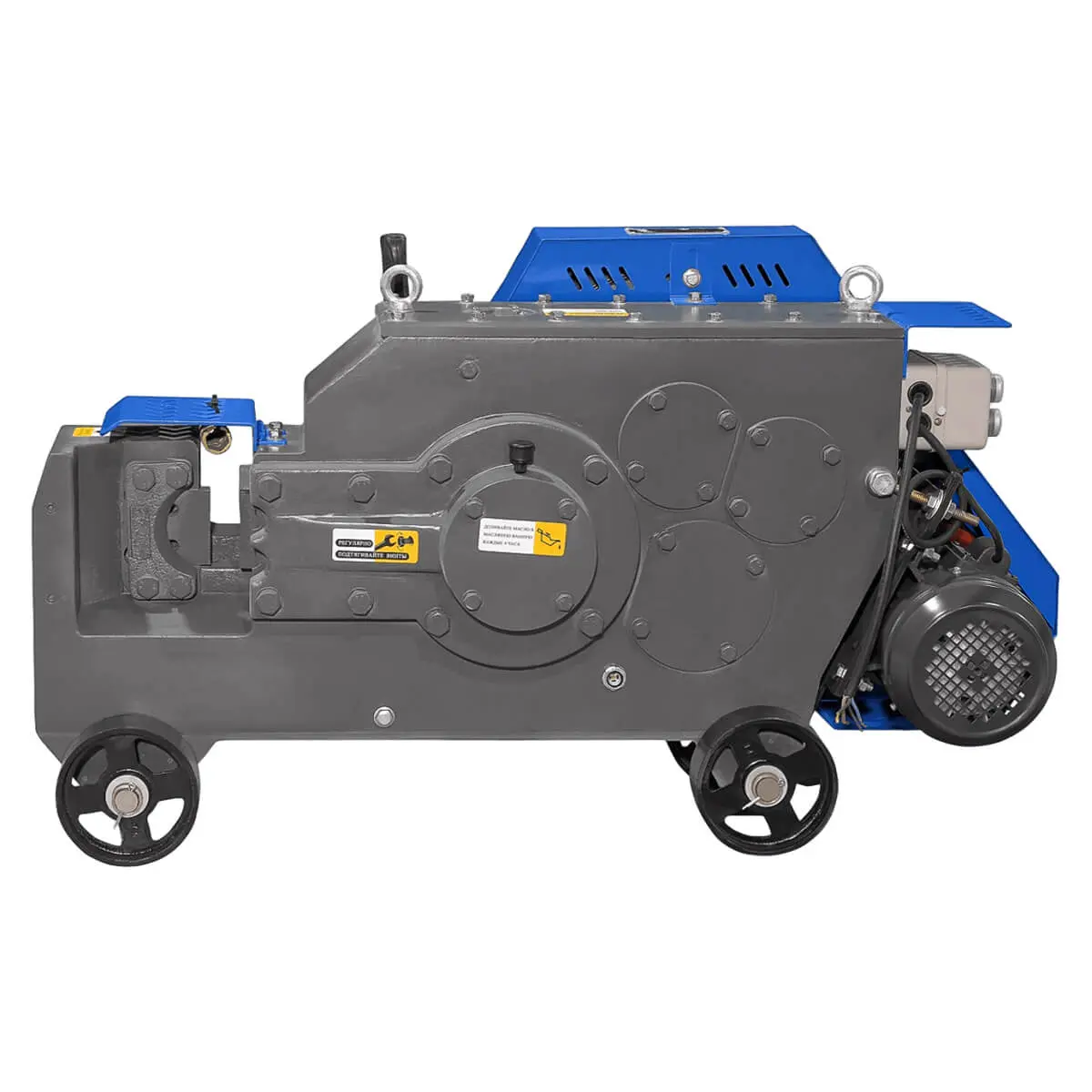 Техника оснащена мощными резаками, благодаря которым наш станок для резки арматуры имеет более высокую производительность. Лезвия резаков сделаны из прочных материалов с низкой износостойкостью, что увеличивает срок их жизни. Оборудование компактное и запросто перемещается по рабочей площадке, благодаря наличию колес.