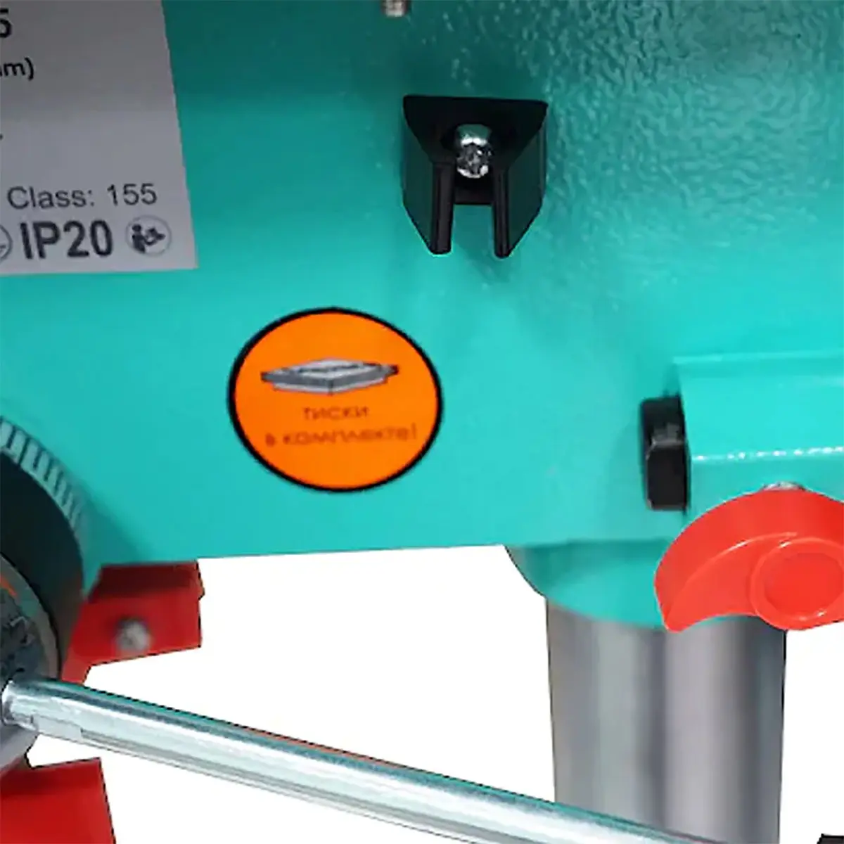 Инструмент оснащен электродвигателем мощностью 450 Вт. Электропривод и шпиндель закреплены на вертикальной конструкции и могут быть отрегулированы по высоте. Особенностью станка являются ступенчатые шкивы и клиноременная передача, позволяющие задавать 9 скоростей вращения в пределах 280-2350 об/мин.