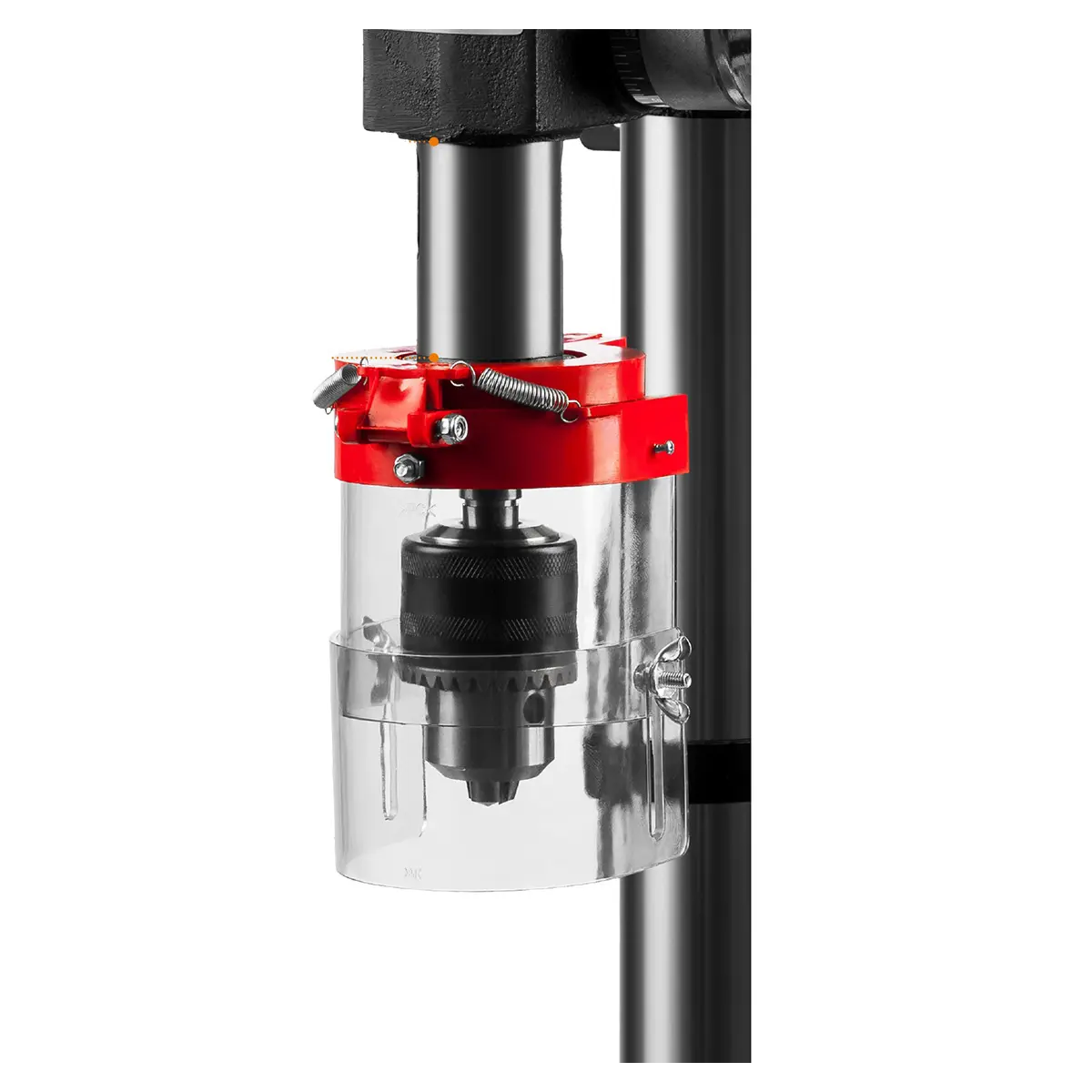 Для обеспечения безопасности оператора станок оснащен прозрачным кожухом, который защищает от стружки и других мелких частиц во время сверления.