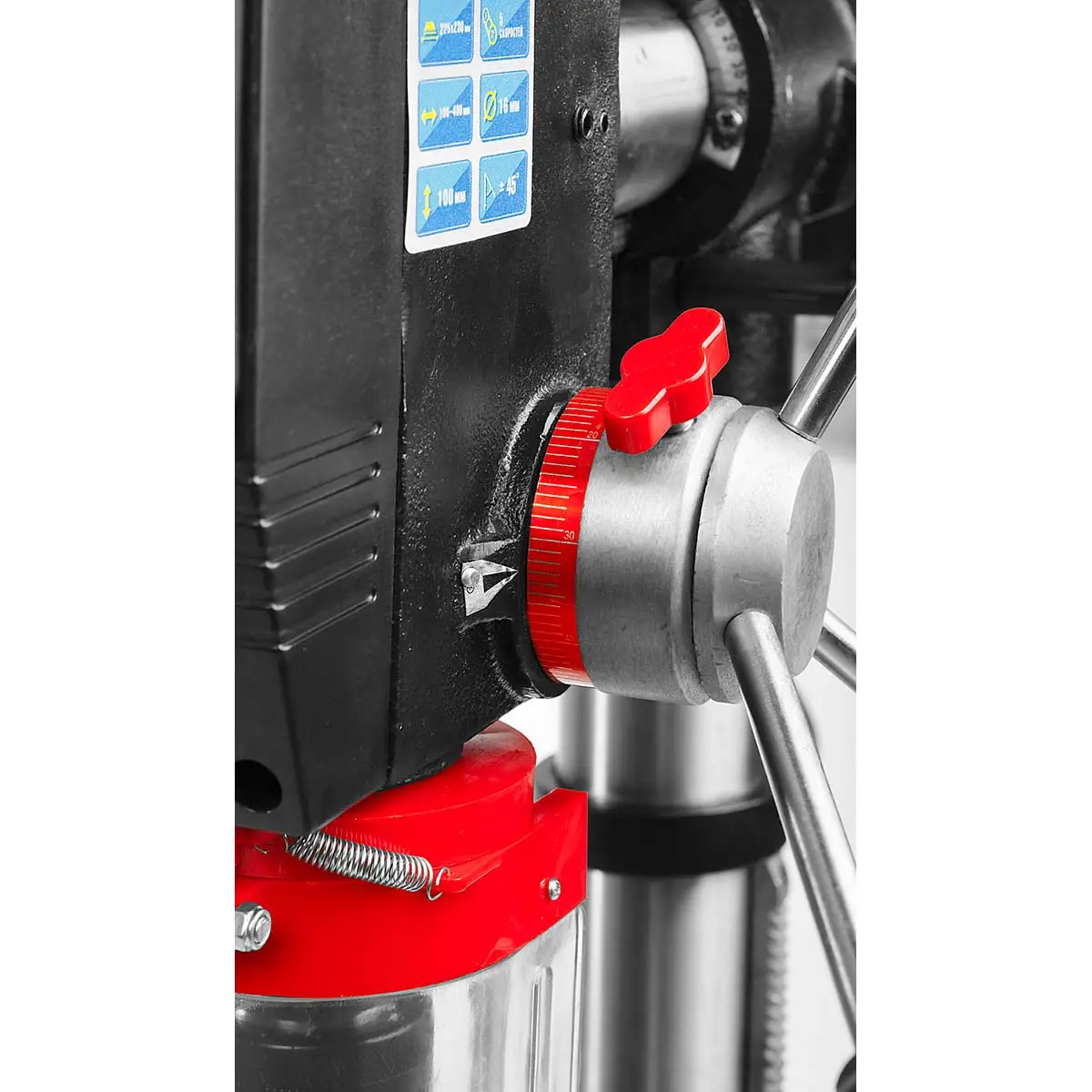 Горизонтальное перемещение сверлильной головки дает возможность обрабатывать крупногабаритные заготовки, а регулируемый наклон сверлильной головки позволяет выполнять сверление под нужным углом. Возможность сверления на заданную глубину обеспечивает точность и контроль при выполнении работ.