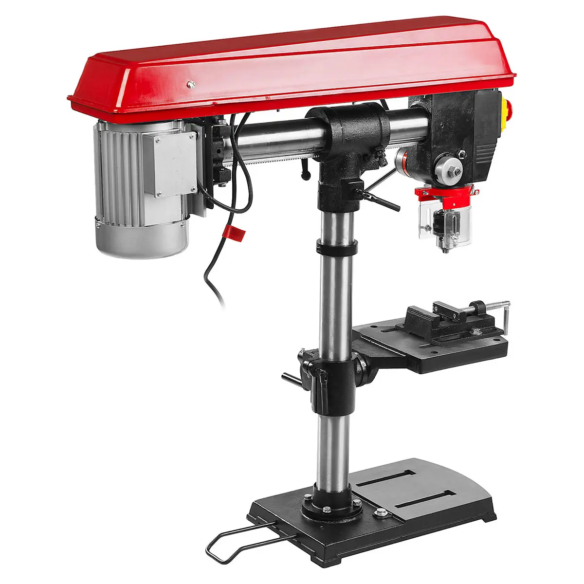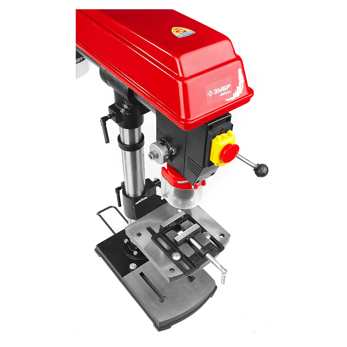 Электромагнитный выключатель с кнопкой экстренного выключения обеспечивает безопасность оператора в случае необходимости быстрого прекращения работы. Ременная передача с 5 скоростями позволяет выбирать оптимальный режим работы для различных материалов, обеспечивая точность и качество сверления.
