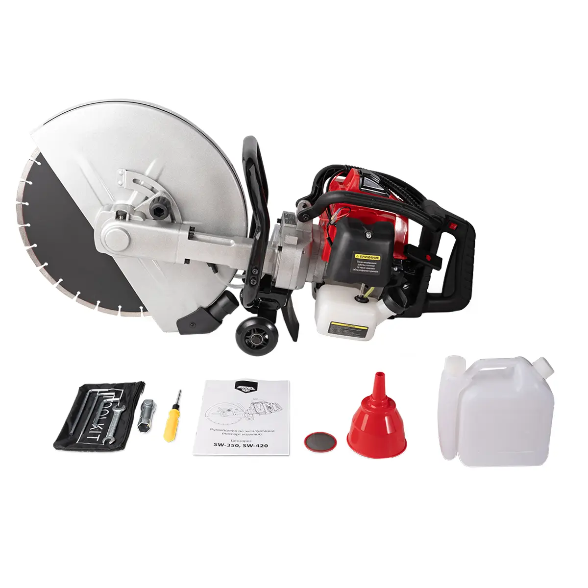 Бензорез AMO SW-420 - мощный профессиональный инструмент для демонтажа конструкций из бетона из стали, выполнения дорожных и ремонтных работ в самых разных сферах. Агрегат также легко справится с кирпичом, блоками, гранитом и другими материалами, главное - выбрать подходящую оснастку. Пильный диск по бетону входит в комплект поставки бензореза , чтобы вы сразу могли приступить к работе.