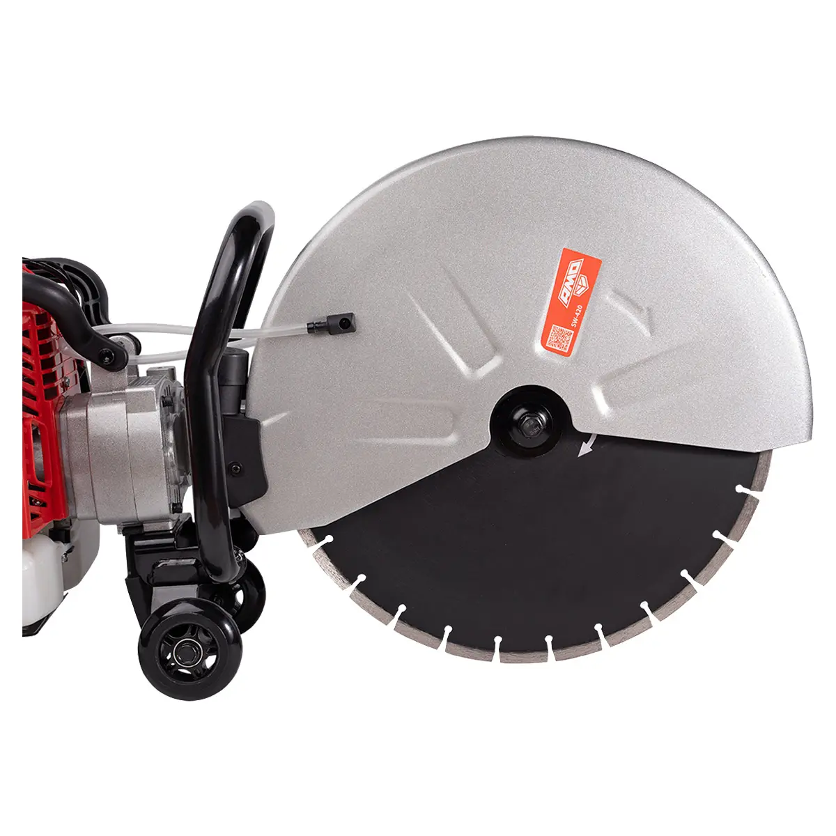 Бензорез AMO SW-420 хорошо подходит для длительной непрерывной работы и глубокого пиления за счет системы охлаждения диска водой. Такое решение снижает количество перерывов, продлевает срок службы оснастки и прибивает пыль. Все необходимые для мокрой резки аксессуары включены в комплект.
