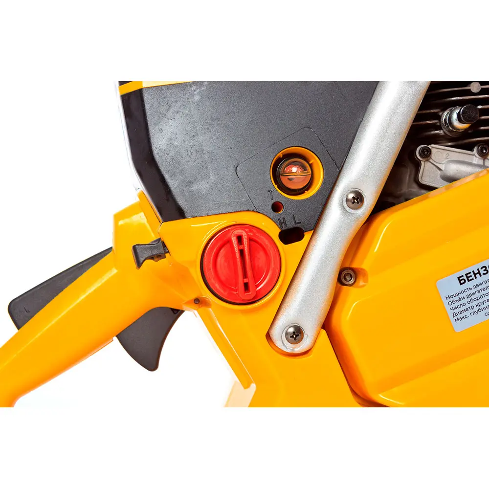 Бензорез функционирует за счет бензинового двухтактного двигателя мощностью 4,7 л.с. с воздушным типом охлаждения, защищающий агрегат от перегрева и увеличивающий его срок работы. Объем бака для топлива – 1,1 л, позволяющий работать несколько часов автономно, без привязки к источнику питания.