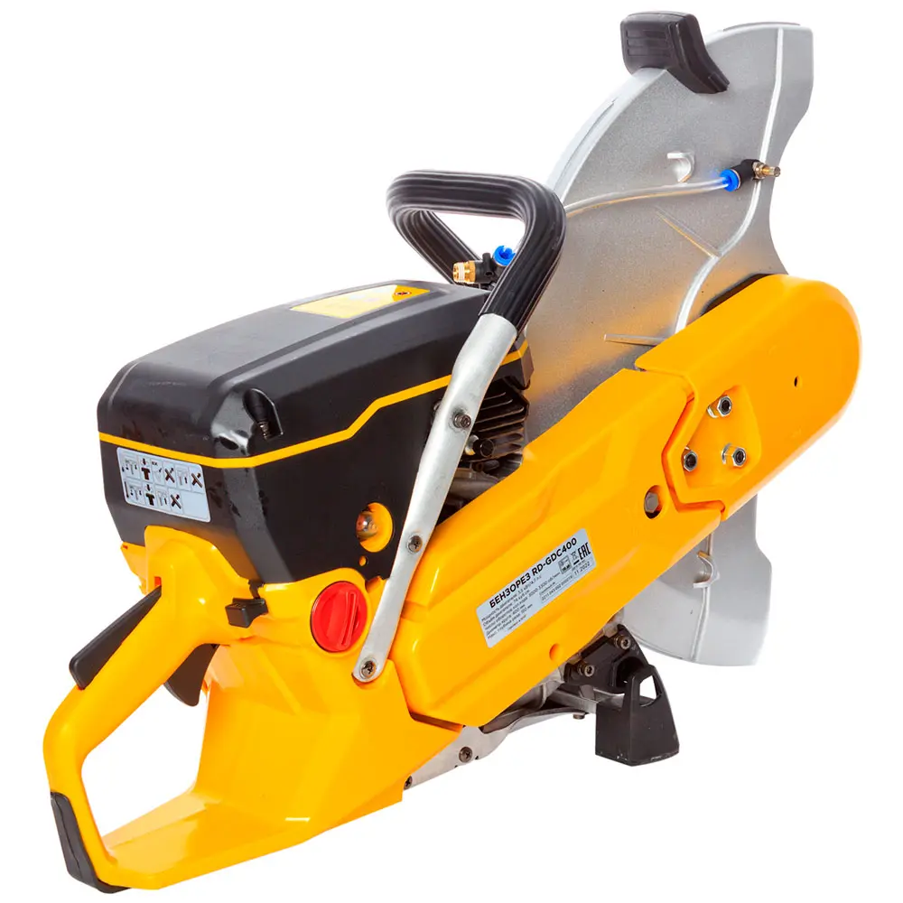 Бензорез REDVERG RD-GDC400 представляет собой автономный инструмент профессионального класса, предназначенный для выполнения монтажно-демонтажных операций, обеспечивая разрезание изделий и конструкций из металла, камня, бетона и других твердых материалов. Он может использоваться при проведении строительных и ремонтных работ, разделке металлического лома, спасательных операций, при устранении последствий чрезвычайных ситуаций и т.п. в местах без доступа к электросети. От модели RD-GDC350, оснащенной приводом такого же объема и мощности, данное изделие отличается возможностью использования оснастки увеличенного диаметра, что позволяет проделывать более глубокий рез, до 150 мм.
