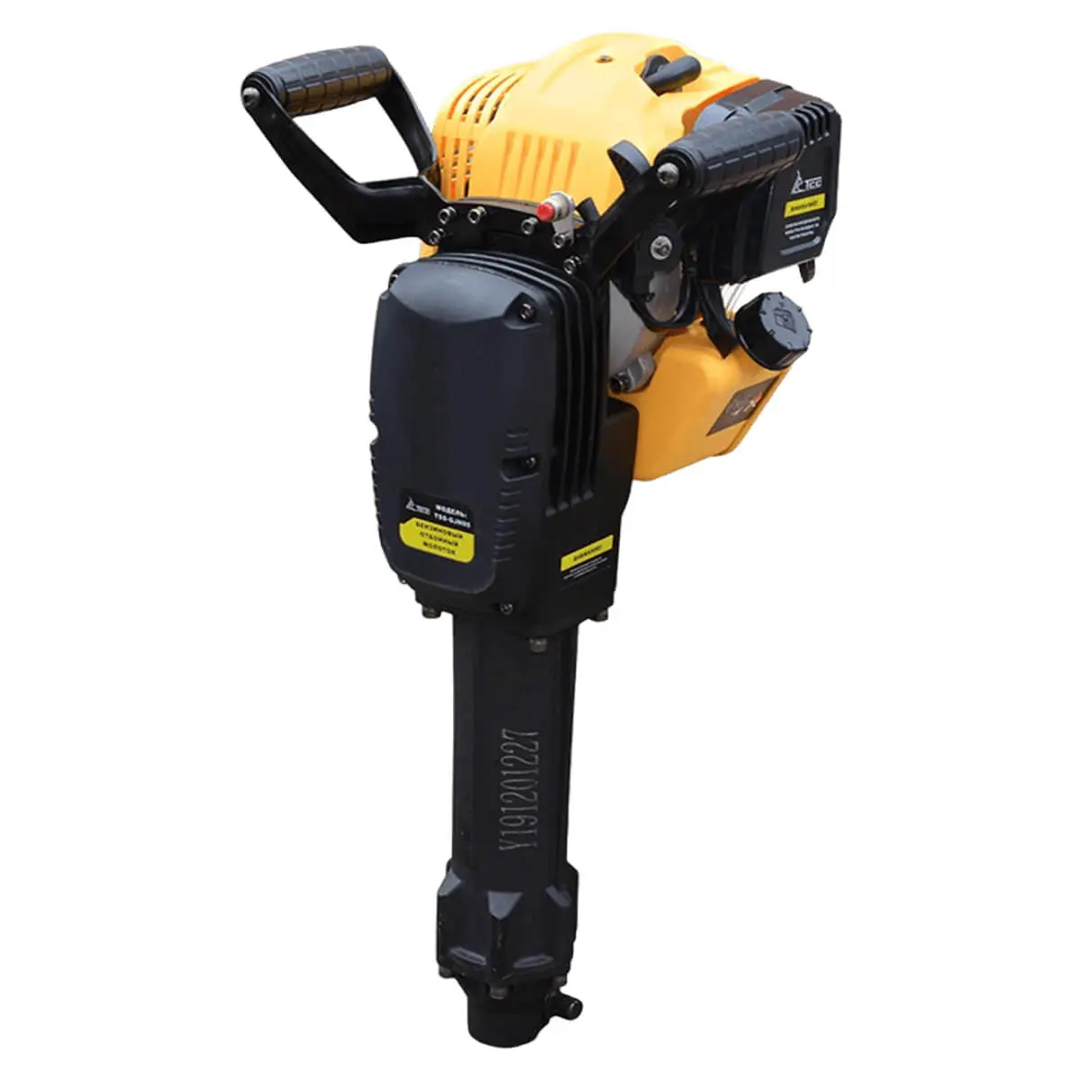 Бензоприводный отбойный молоток TSS-GJH95 благодаря простоте использования подходит как для профессионального, так и бытового применения. Он способен работать в широком диапазоне температур во взрывобезопасных средах и может использоваться круглый год. Полный контроль над инструментом в процессе эксплуатации обеспечивается за счет удержания агрегата двумя руками. Благодаря V-образному размещению рукояток, снабженных эластичным покрытием, минимизированы вибрационные воздействия на оператора. С целью снижения шумности мотор агрегата оборудован глушителем. Для приготовления топливно-масляной смеси в оптимальной пропорции в комплект поставки включена канистра из полупрозрачного пластика с соответствующей шкалой.