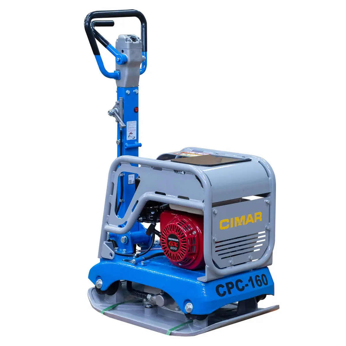 Все узлы закрыты специальной защитной рамой, предотвращающей повреждения и обеспечивающей безопасность оператора виброплиты CIMAR CPC-160-H. Для утрамбовки грунта используется платформа размером 700 х 430 мм, изготовленная из прочного чугуна методом сплошного литья. Она максимально адаптирована к высоким ударным воздействиям и интенсивным нагрузкам.