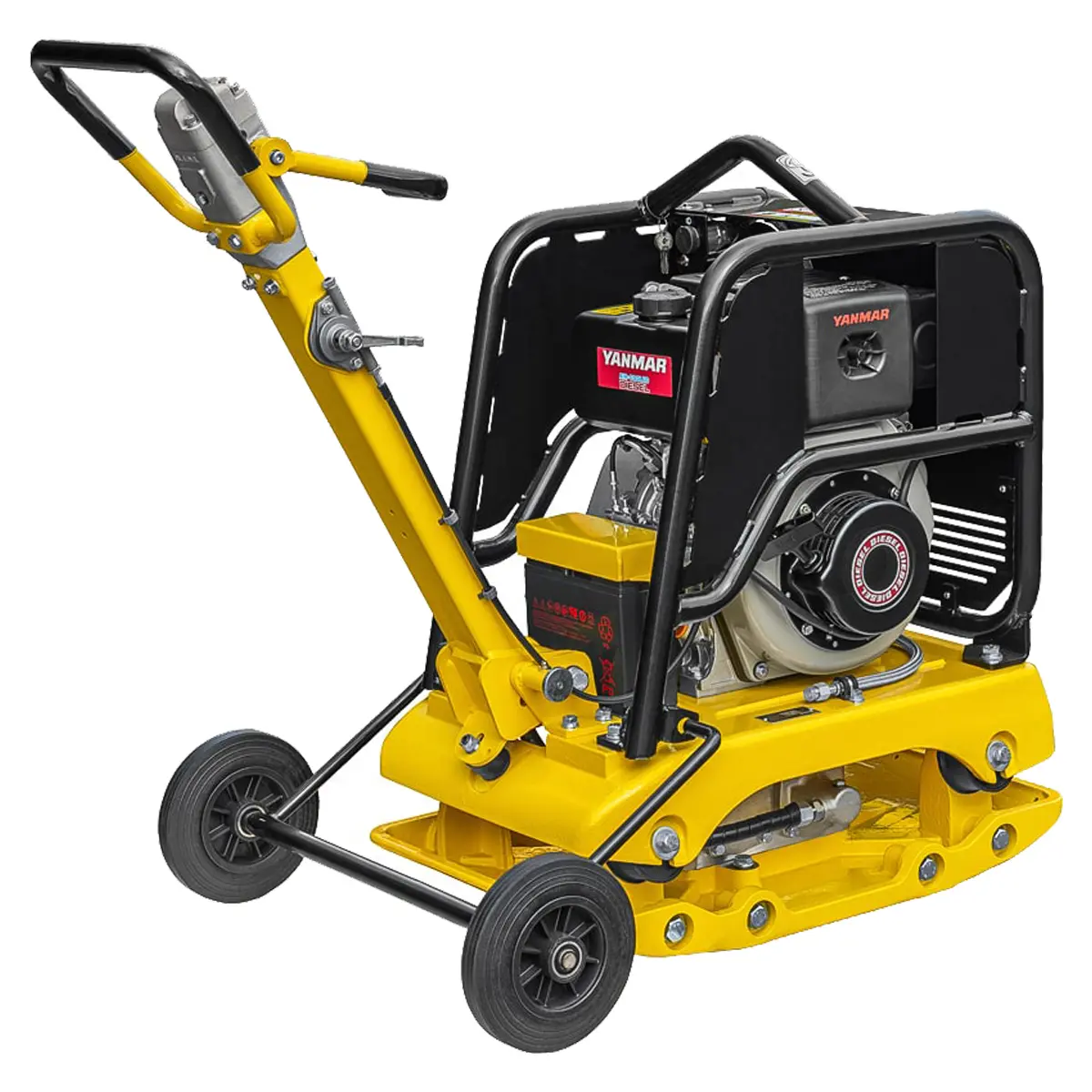 Виброплита оснащена дизельным двигателем и гидравлическим приводом. Позволяет легко маневрировать на любой территории и плавно переключать скорость для комфортного передвижения.