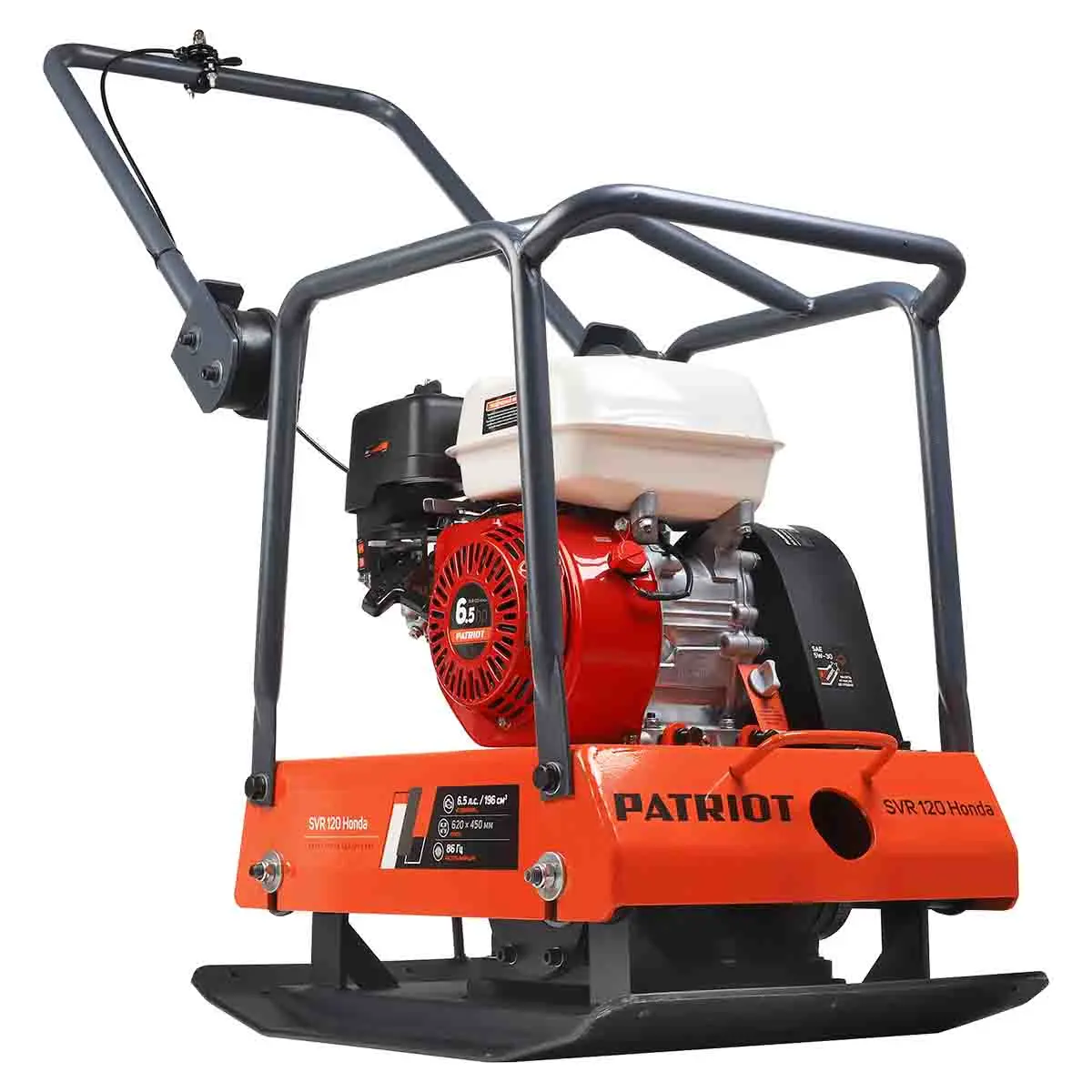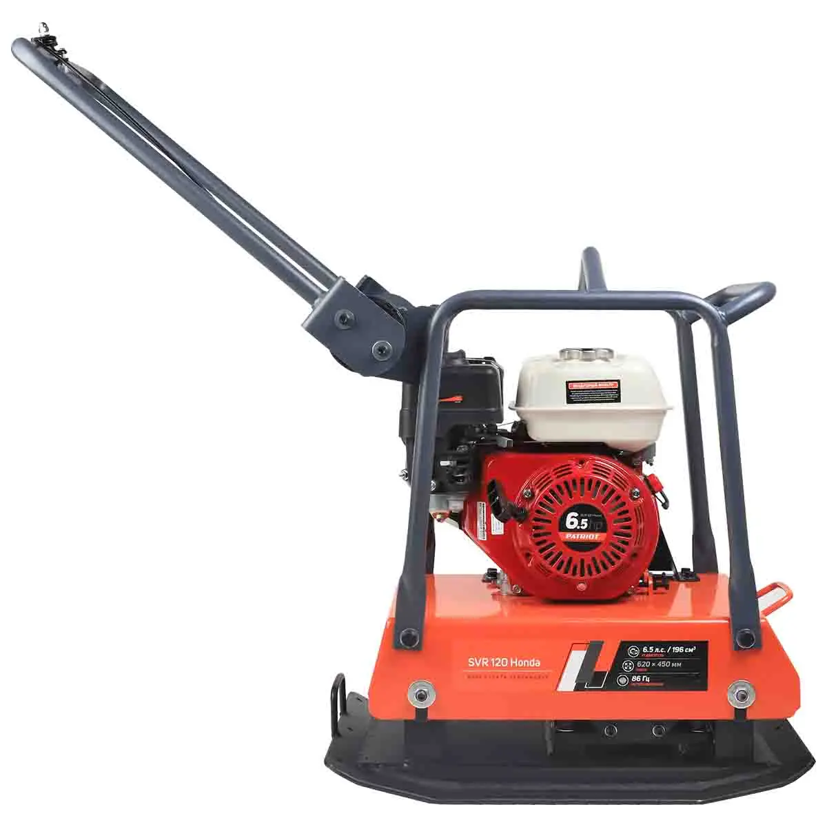 Patriot SVR 120 Honda – прямоходная виброплита из серии Expert (для профессионального использования). Данная модель предназначена для эксплуатации при средней и высокой степени нагрузки при благоустройстве территорий, в дорожном строительстве, при прокладке сетей коммуникаций. Техника дает возможность выполнить качественное уплотнение грунта, гравия или других сыпучих материалов при укладке труб коммуникаций, дорожном строительстве, благоустройстве территорий.