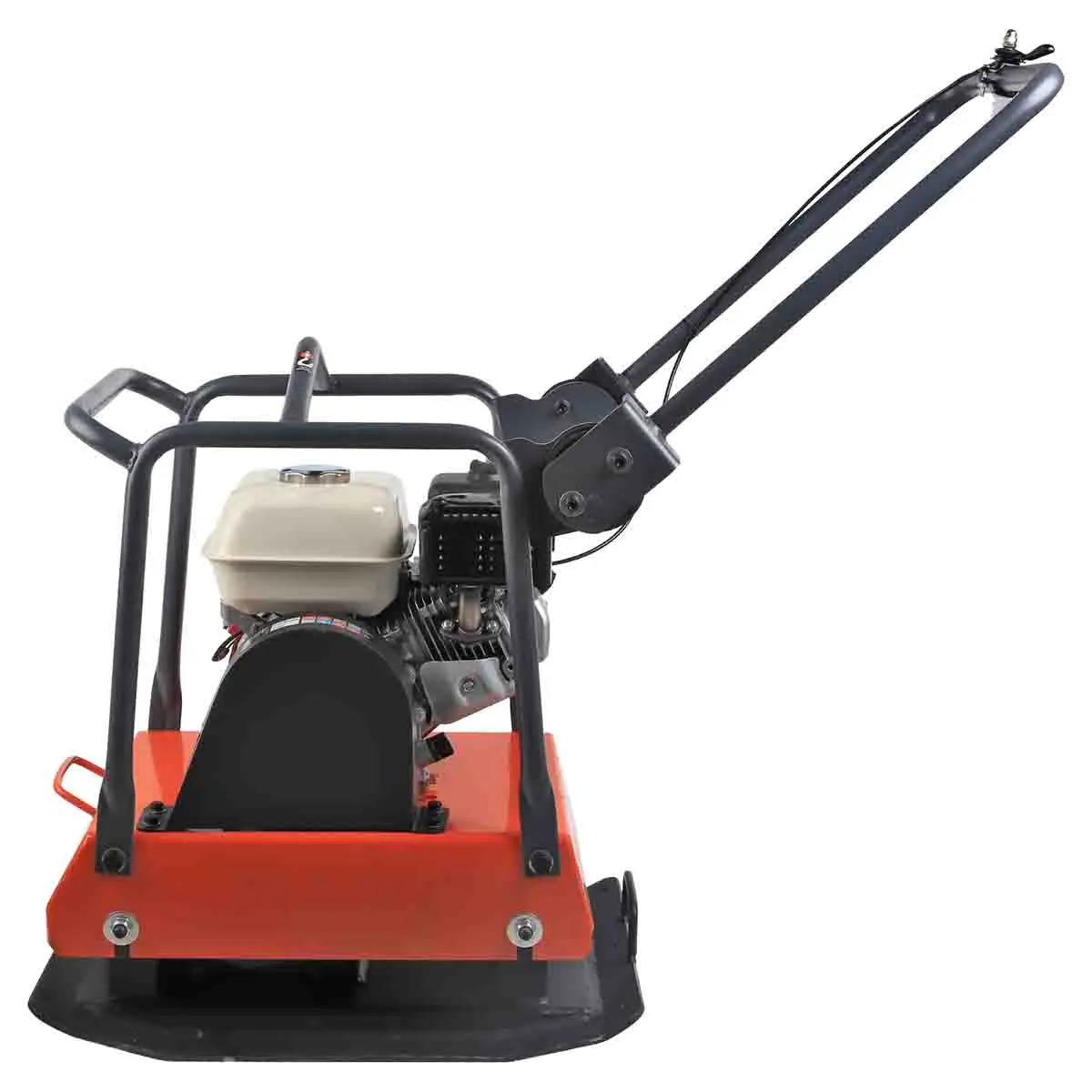 Виброплита имеет прочную и безопасную для оператора конструкцию. Она состоит из металлической рамы, двигателя, связанного с уплотнительной платформой посредством ременной передачи.