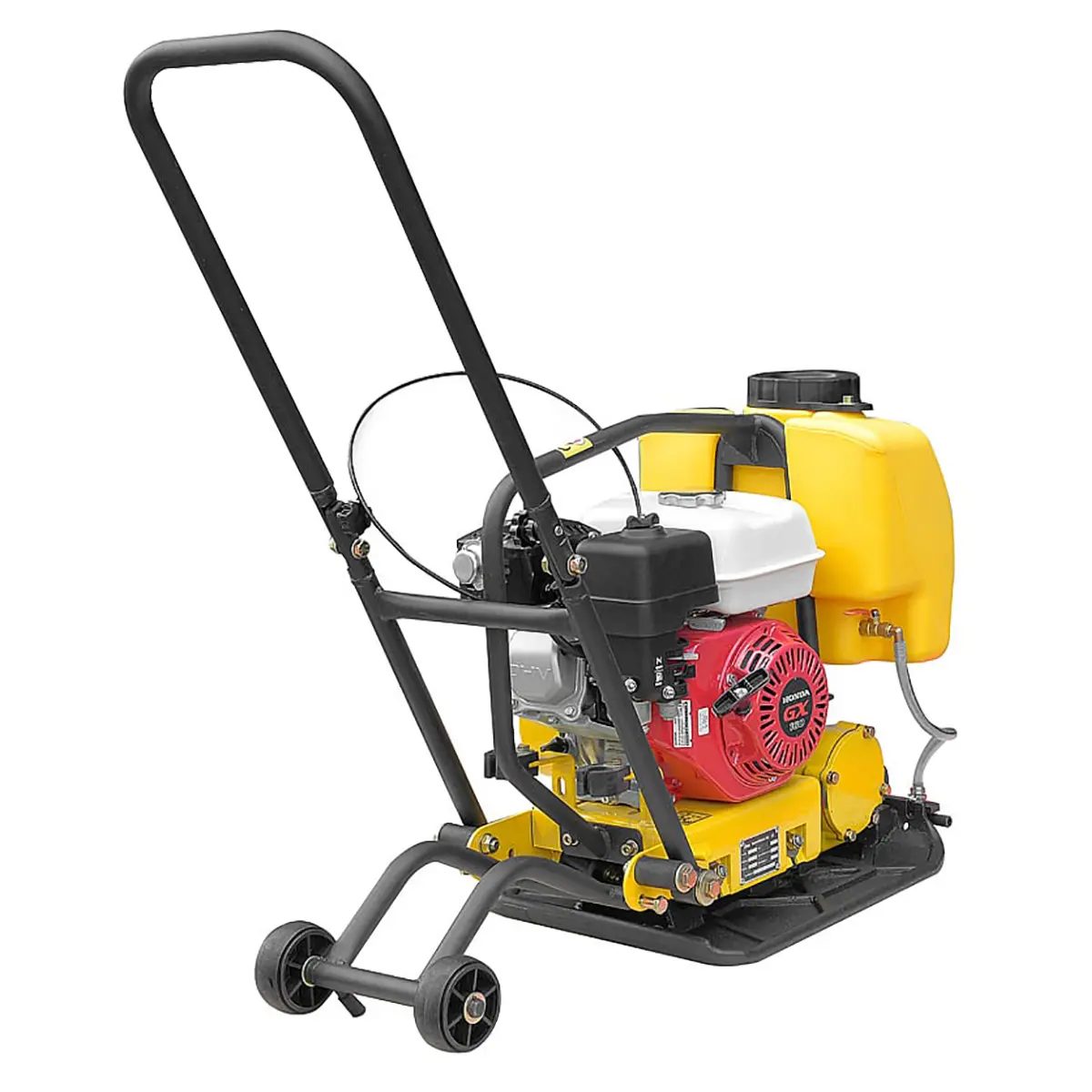 Складывающаяся ручка позволяет удобно транспортировать и хранить вибрационную плиту. Встроенные колеса значительно облегчают транспортировку, а легкое управление позволяет обрабатывать даже угловые участки без особых усилий.