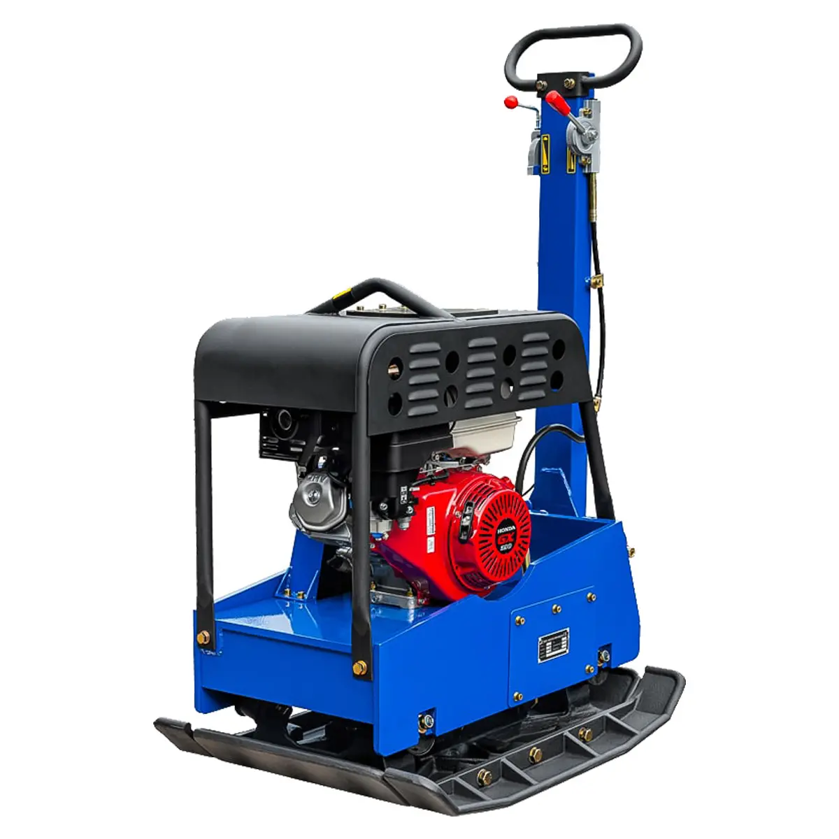 Вибрационная плита оснащена механизмом изменения направления движения, что позволяет ей двигаться как вперед, так и назад. Такая функция повышает производительность работы, снижает нагрузку на оператора и обеспечивает удобство использования в условиях ограниченного пространства. Благодаря своим компактным размерам, она идеально подходит для работы рядом с траншеями и фундаментами домов.