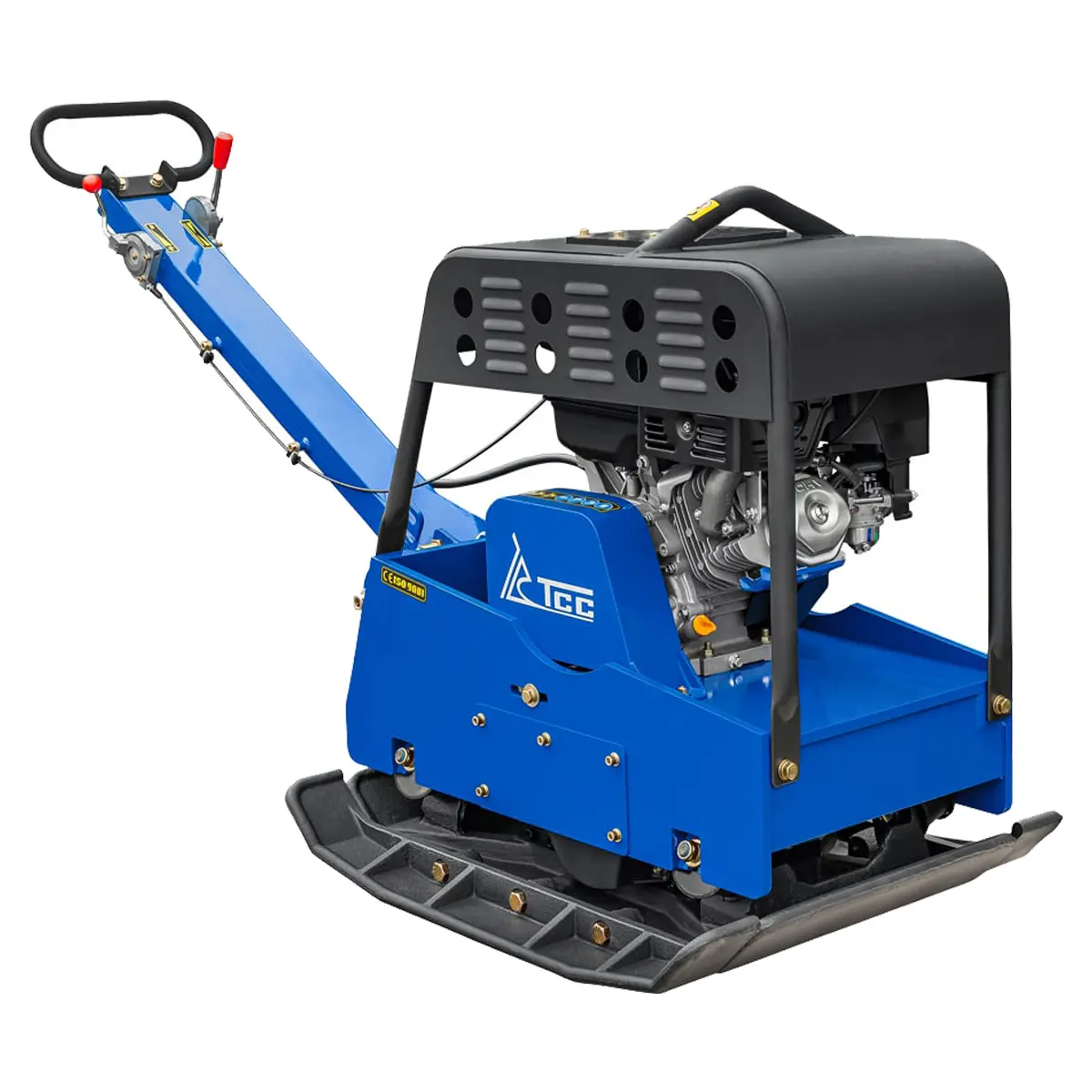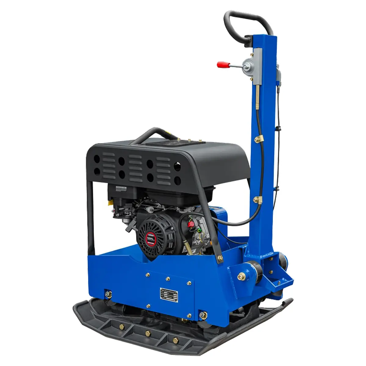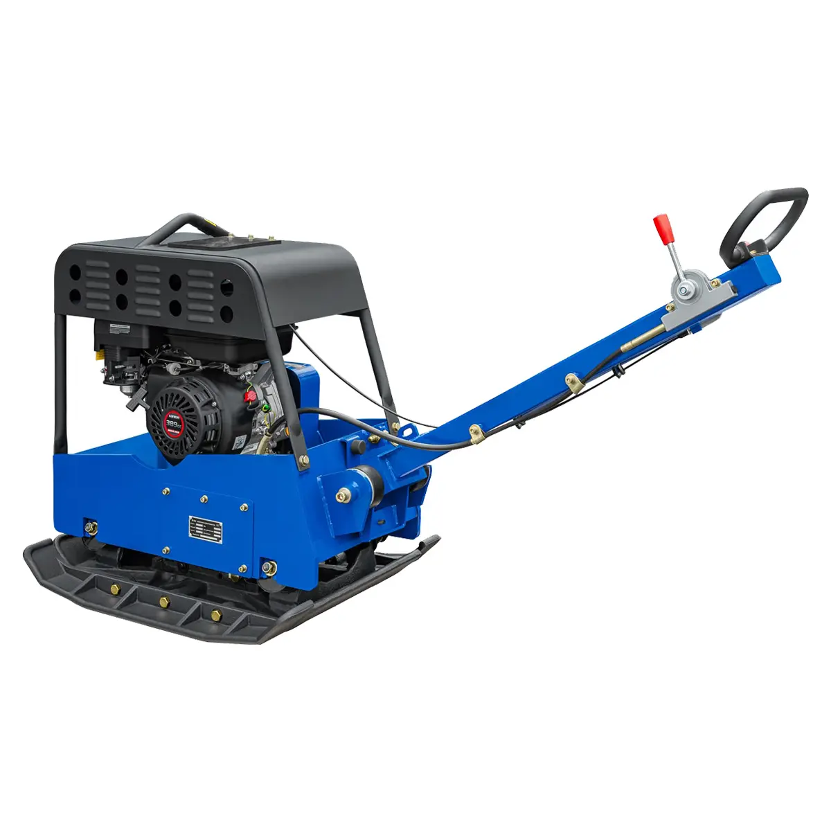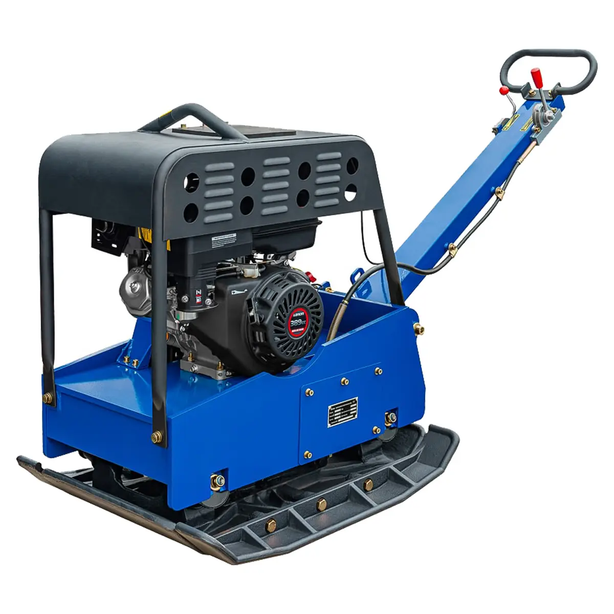 Виброплита выполнена из износостойких материалов и рассчитана на длительную эксплуатацию. Защитная рама с кронштейном для подъема на кране над двигателем предотвращает повреждения. Конструкция основания обеспечивает самоочищение, что вкупе с защитным кожухом предотвращает попадание грязи и песка на внутренние компоненты, продлевая тем самым срок эксплуатации техники.