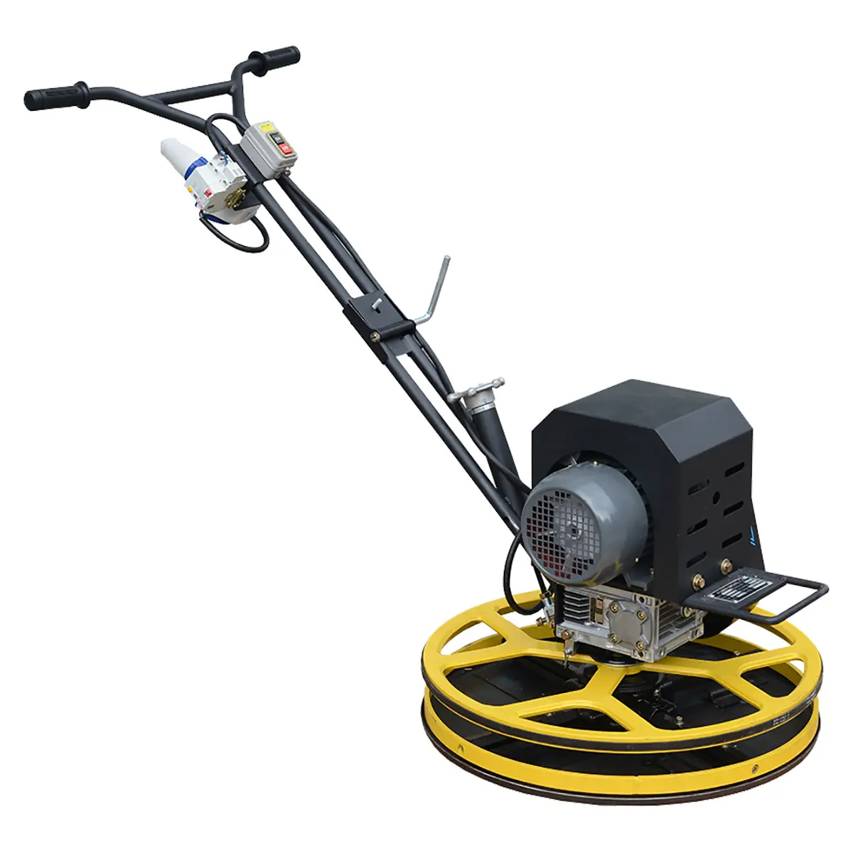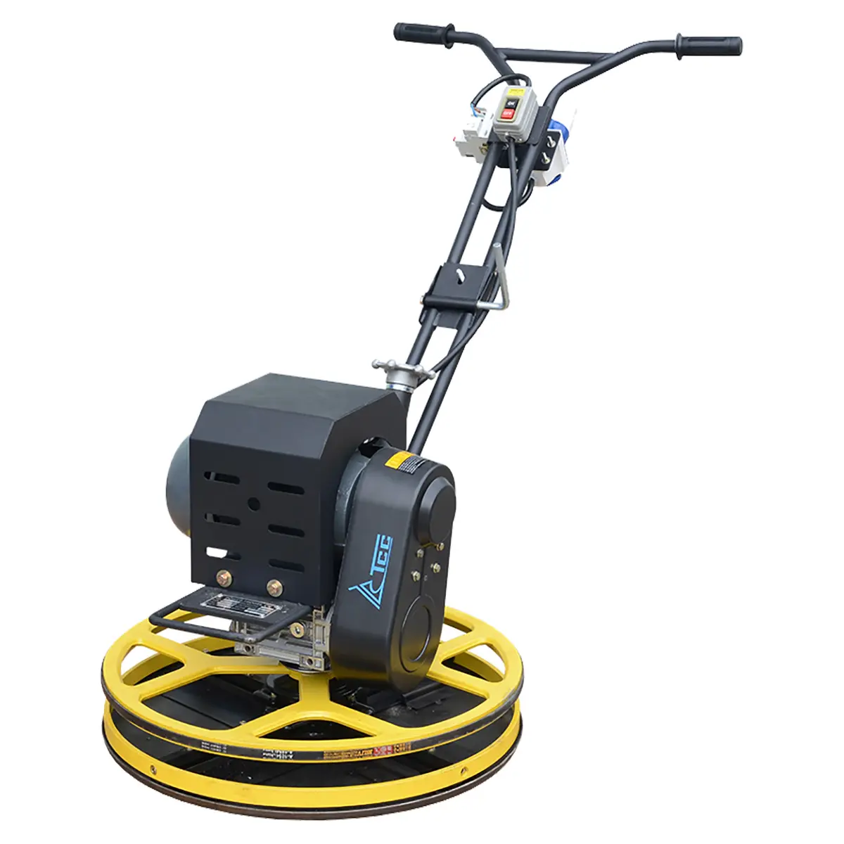Функционирование инструмента обеспечивается за счет электродвигателя мощностью 2,2 кВт, работающего от стандартной сети в 220 В. Для безопасности оператора на эту модель установлено защитное кольцо. Также оно позволяет осуществлять затирочные работы вдоль стен, не повреждая их.
