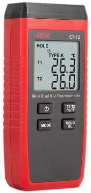 Специальная индикация оповещает специалиста о ненадлежащем подключении или неисправности термопары. Двухканальный цифровой термометр RGK CT-12 также сообщает о превышении предела измерений и низком уровне заряда элементов питания. Измерение пиковой и средней температуры упрощает реализацию различных сценариев проверки, особенно при работе с крупными объектами.