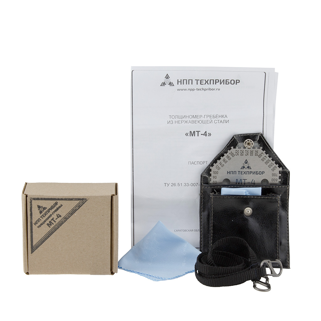 1) Стандартный: толщиномер-гребенка, чехол, паспорт;