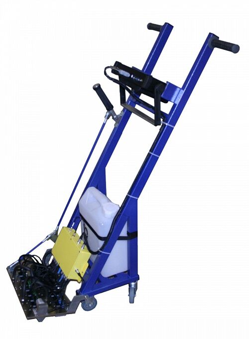 Перемещение тележки осуществляется на колесах. Для легкого подъема и опускания акустического блока на механической части установлен рычаг