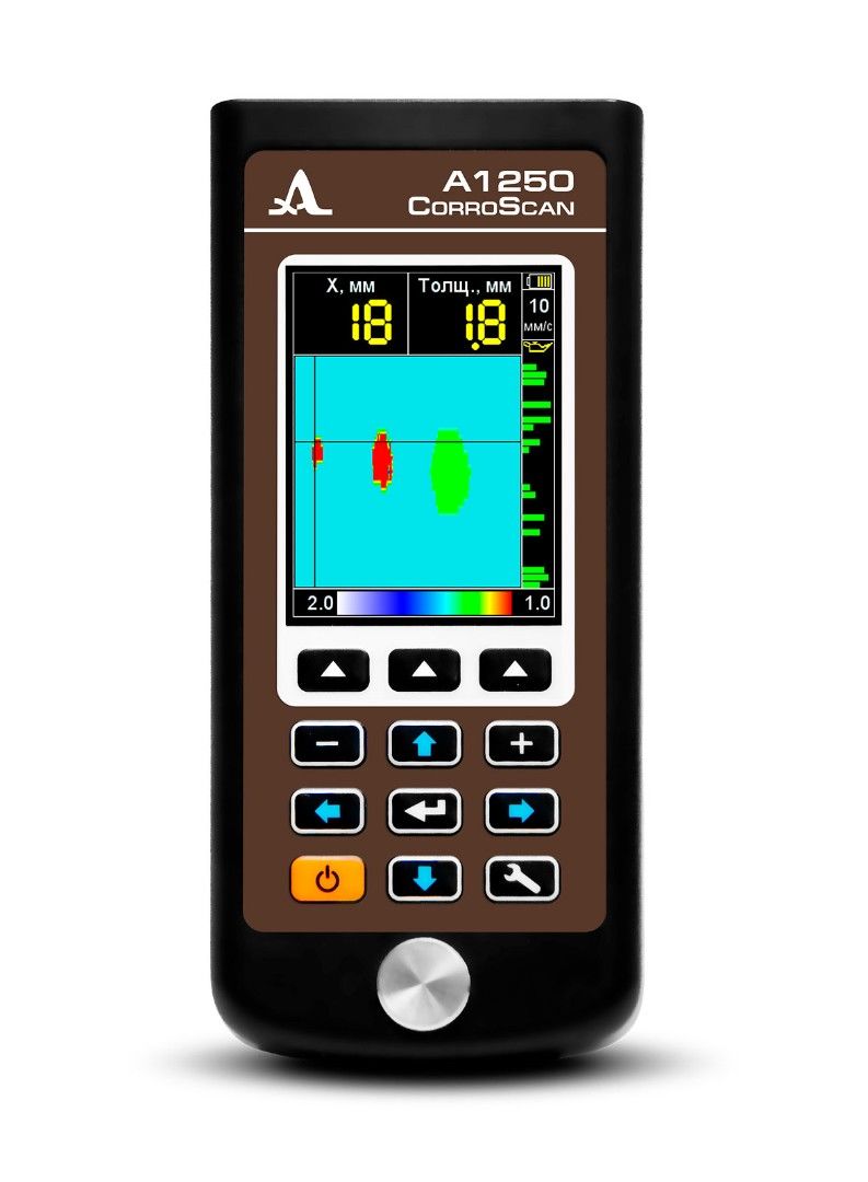 - Задание границ диапазона измерений для оценки профиля толщины, выявления локальных коррозионных участков с представлением сечения объекта контроля в различной цветовой схеме.